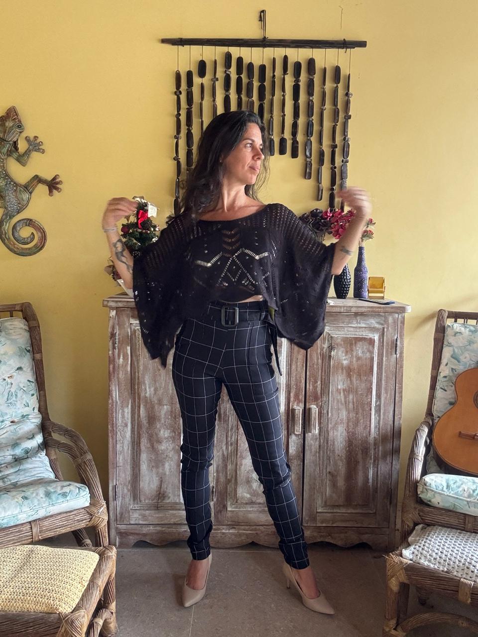 Blusa Cropped de Tricô Artesanal Preto – Mercatto – tam M