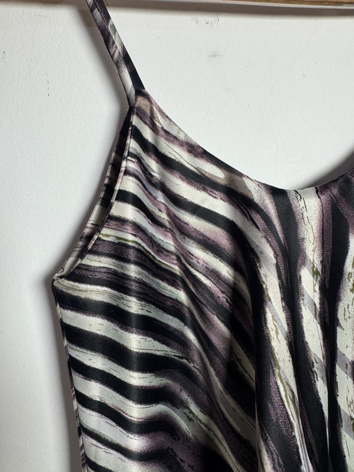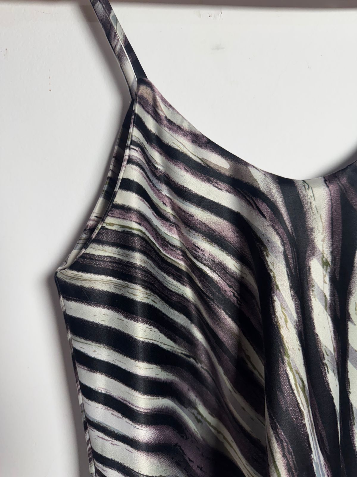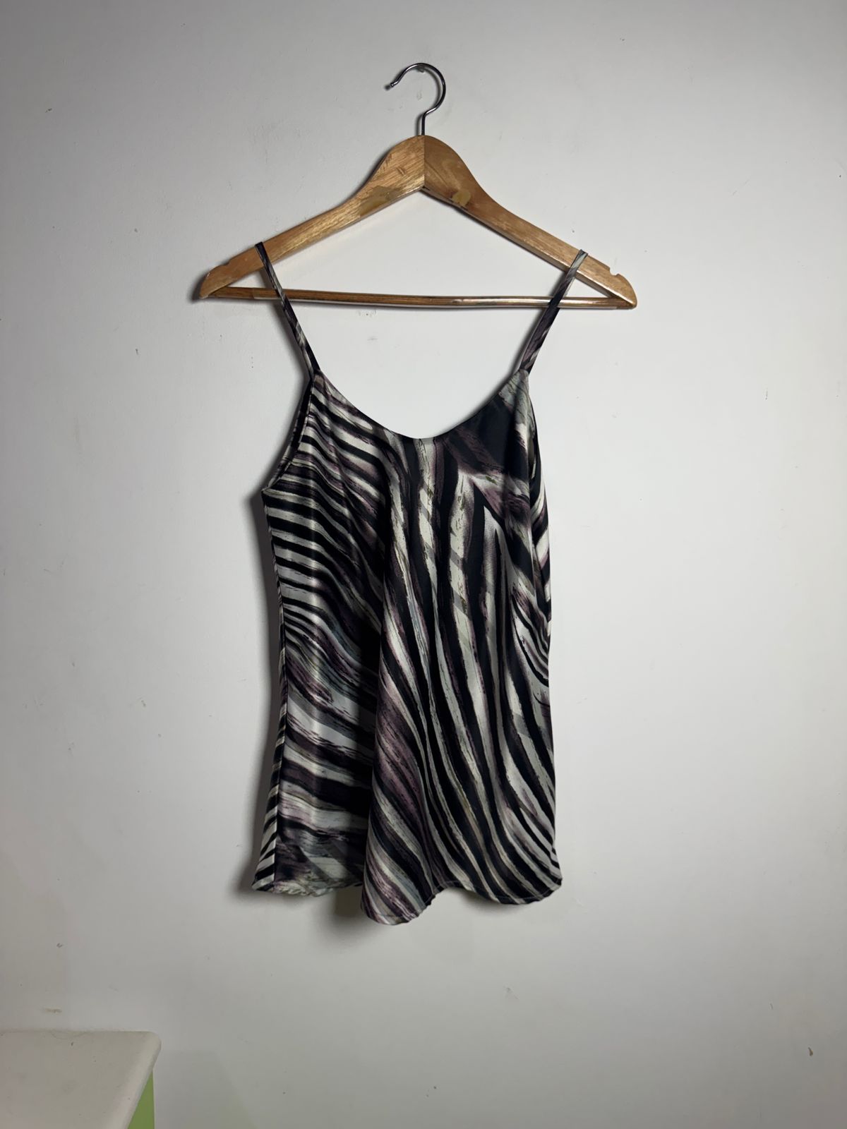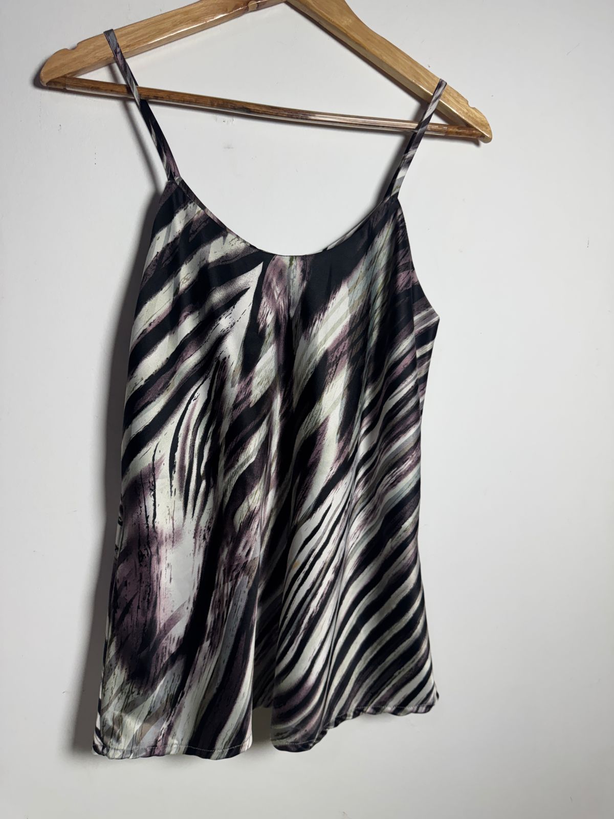 Blusa regata com vibrante estampa de zebra em tons de preto, branco e toques sutis de roxo. Leve e com alças finas, ideal para um look fresco e estiloso.