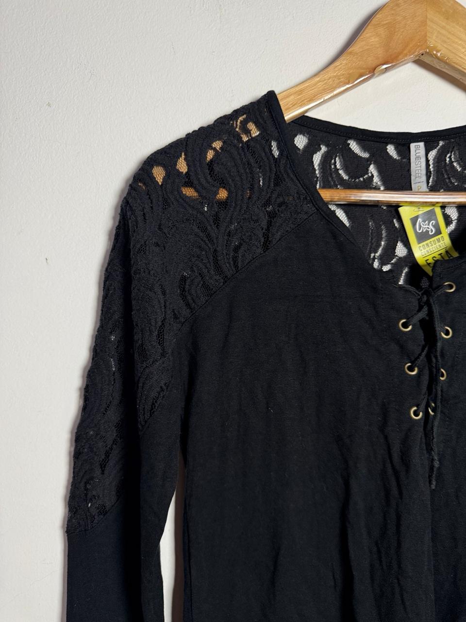 Blusa Trançada com Renda Black – Bluesteel – tam P