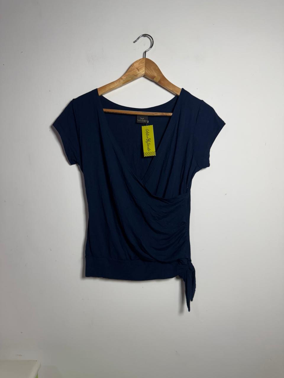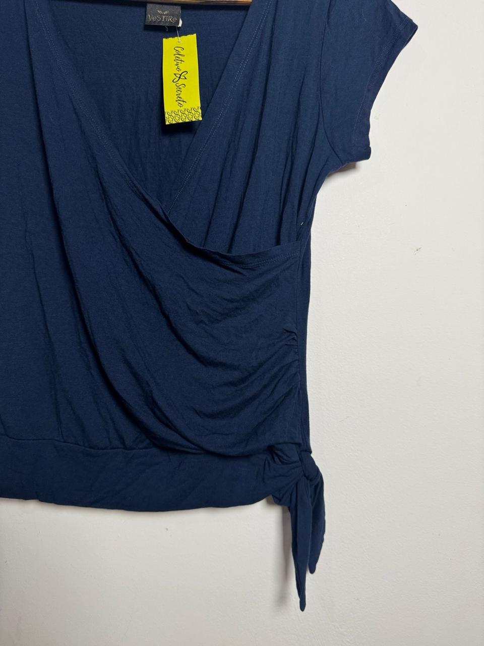 Blusa transpassada com nó lateral azul marinho – Vestire – tam P / M