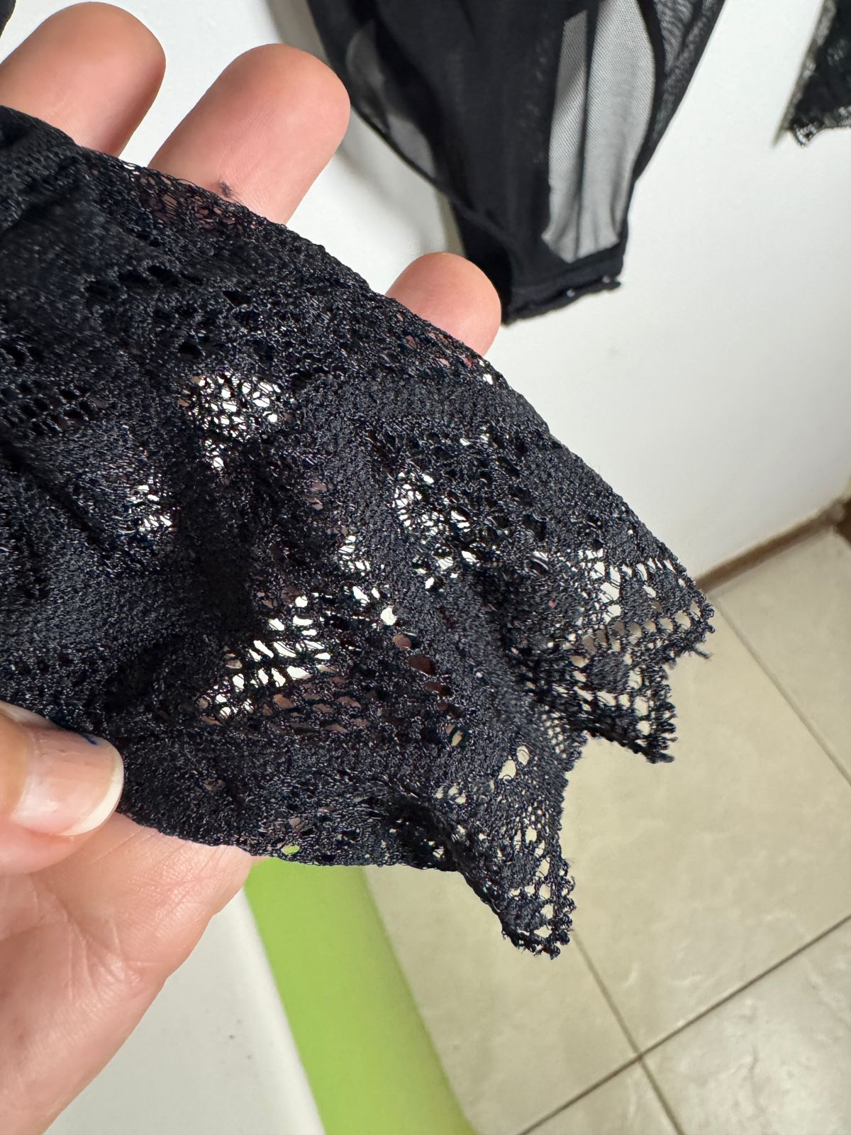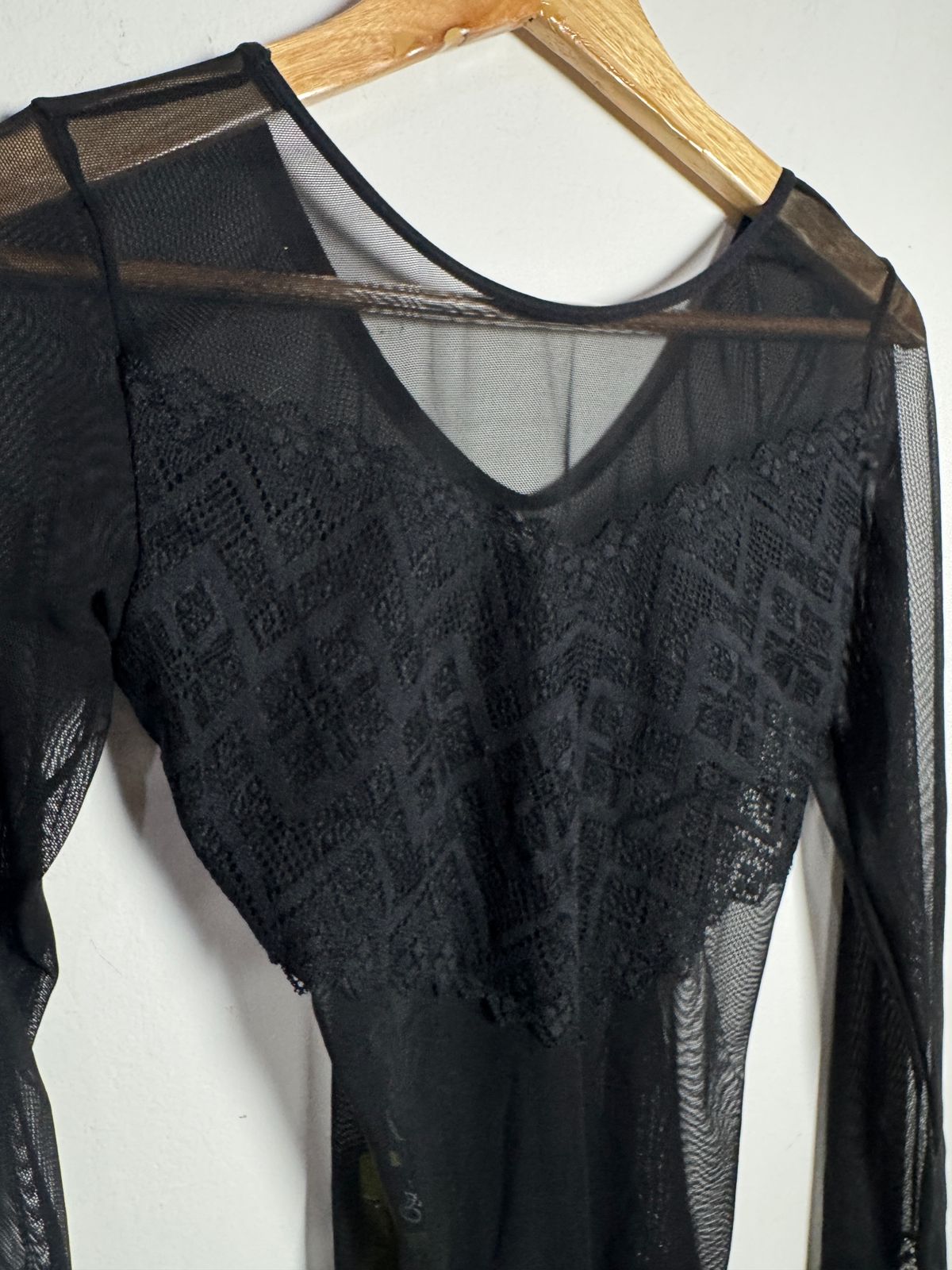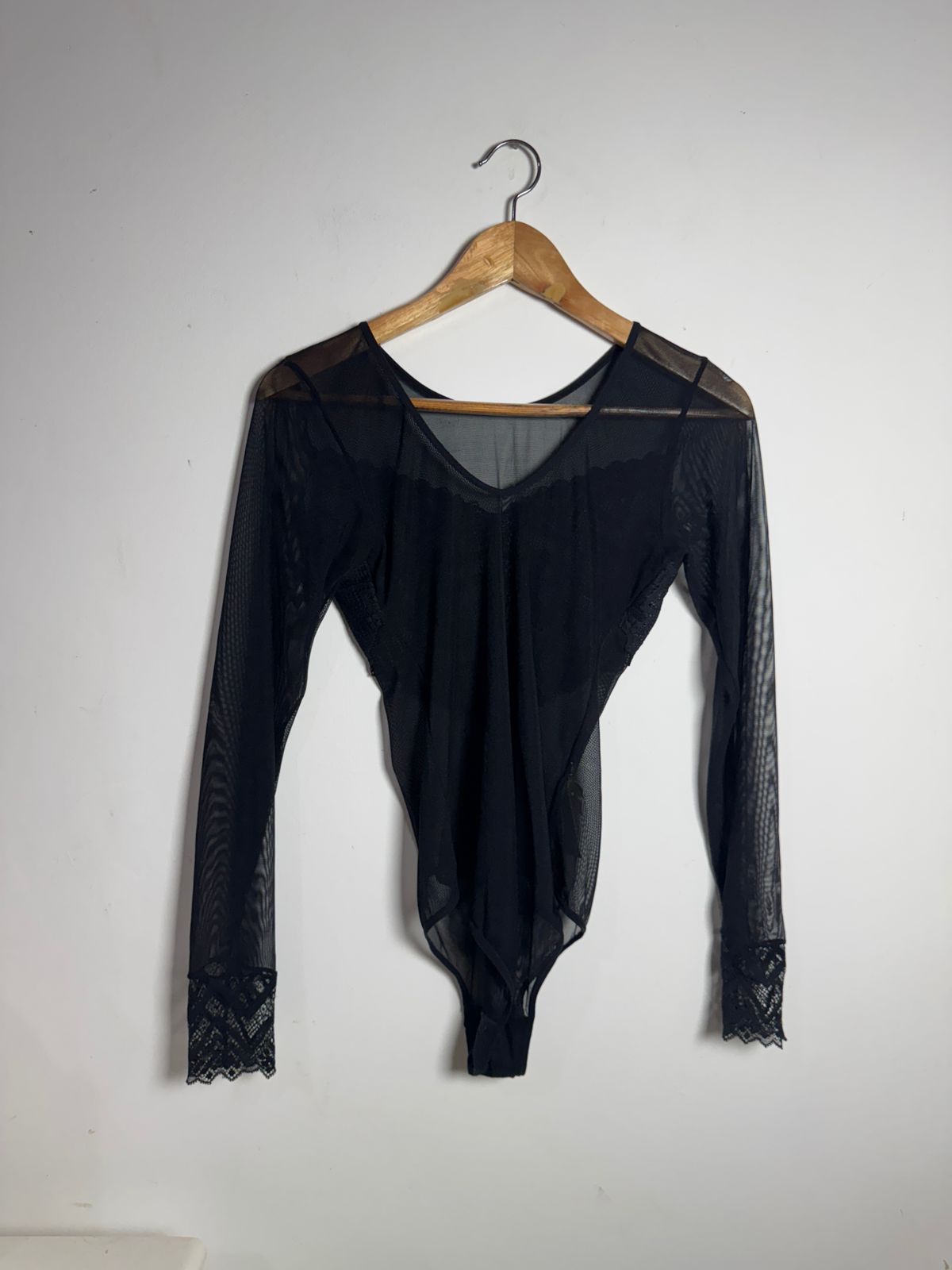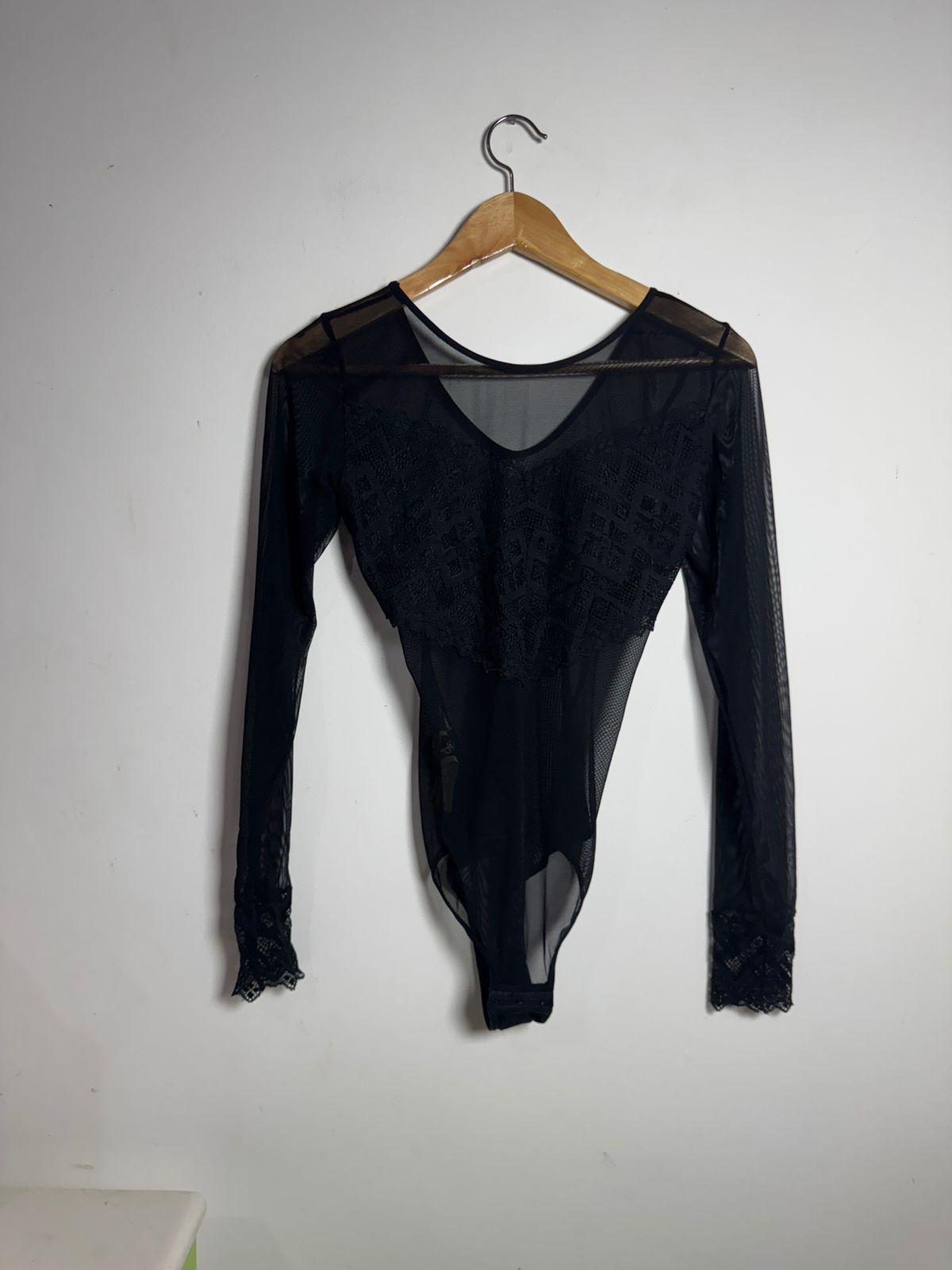 Body preto com transparência e detalhes de renda – tam M