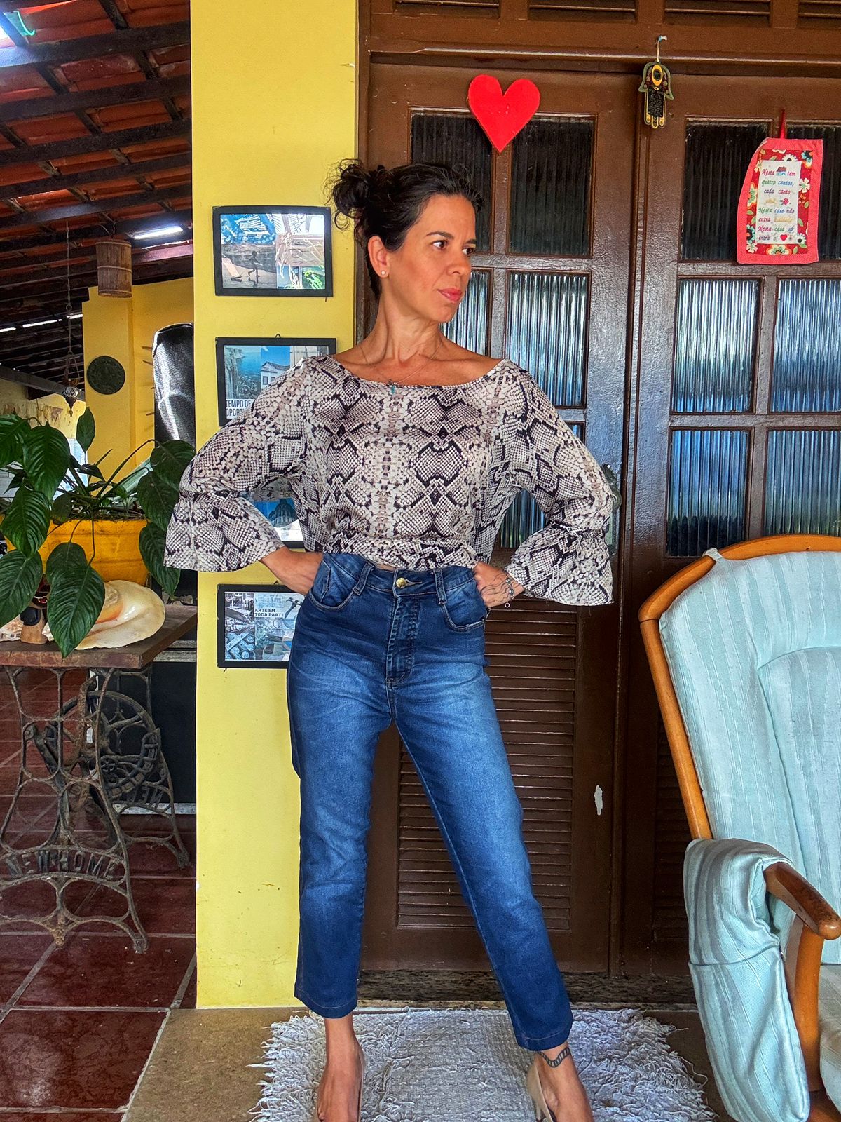 Calça jeans cintura alta – Elly – tam 40