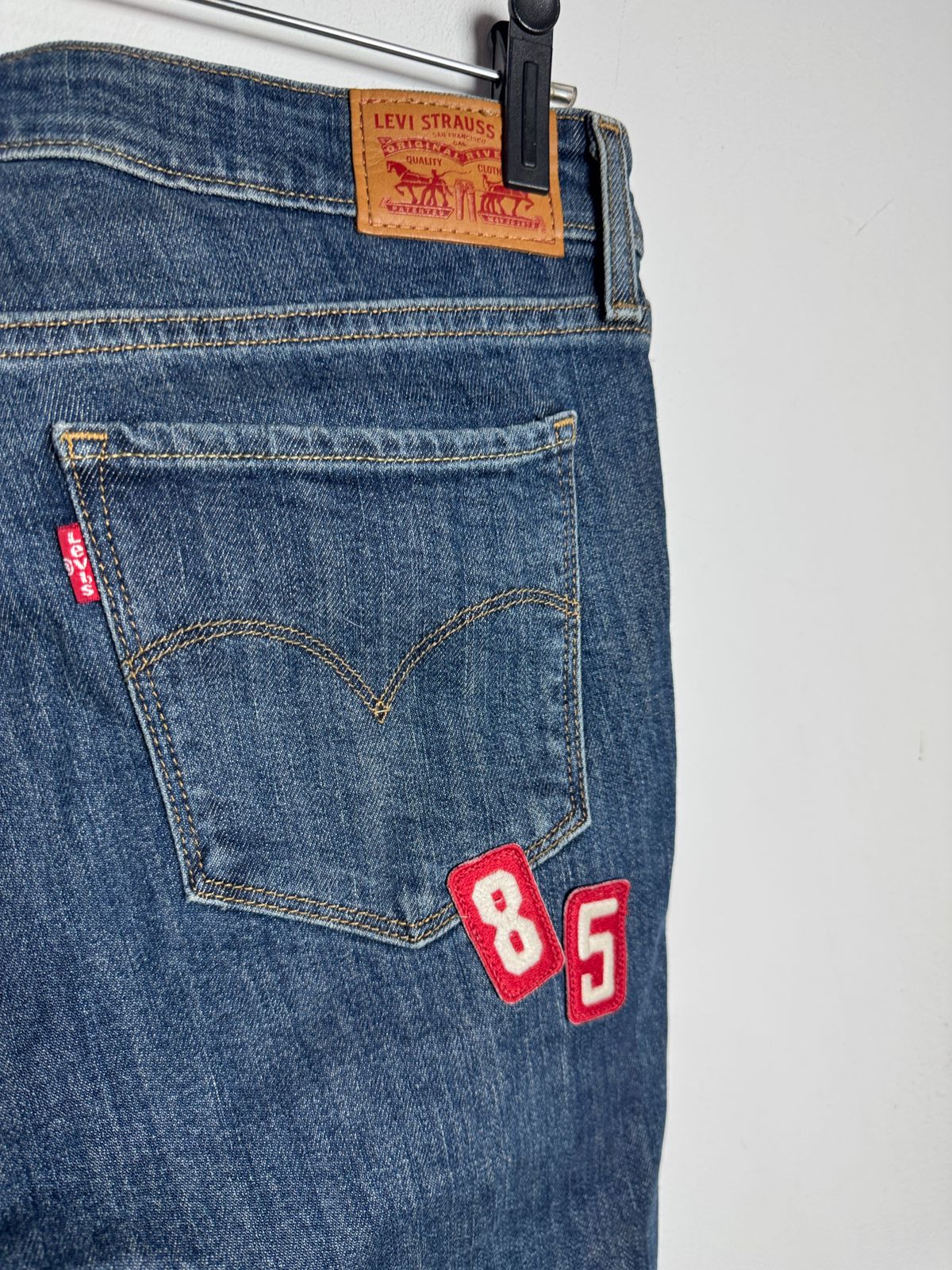 Calça jeans Levi’s original com patches divertidos e modernos! Uma peça única que combina a qualidade da marca com um toque despojado e cheio de personalidade. Perfeita para quem ama se destacar.