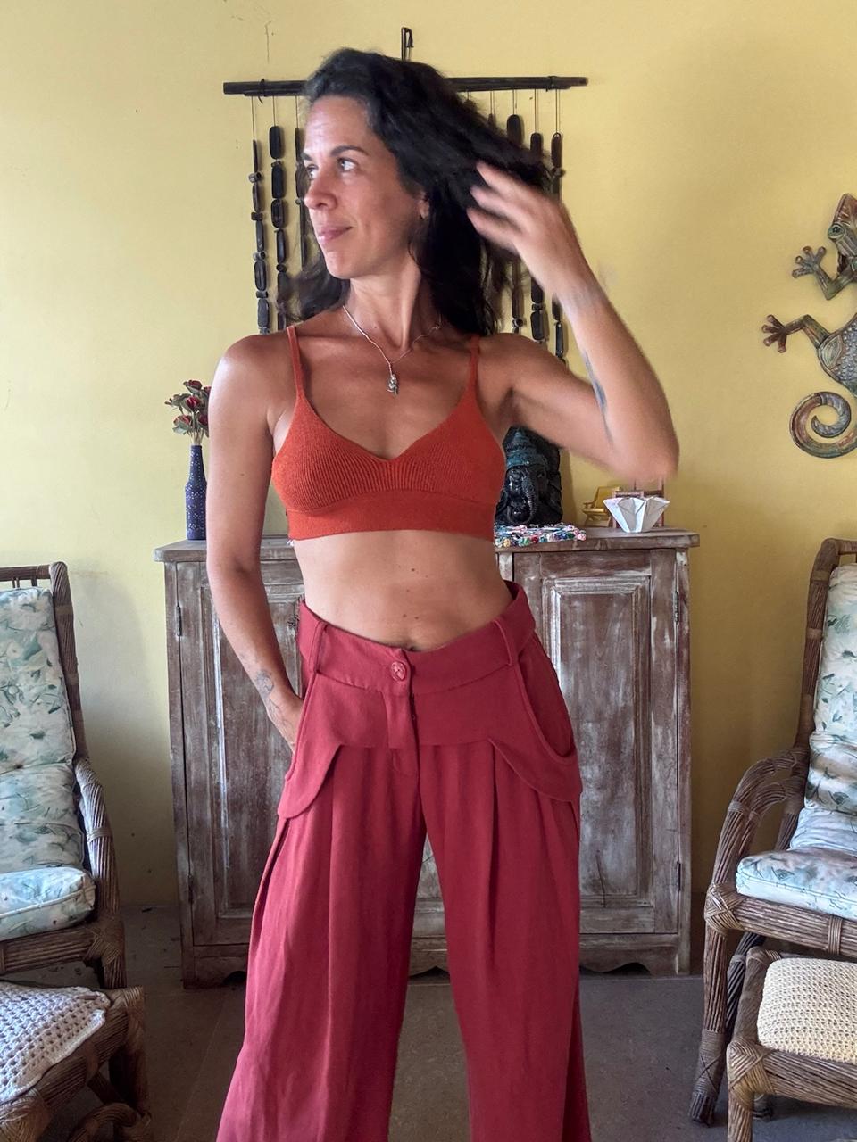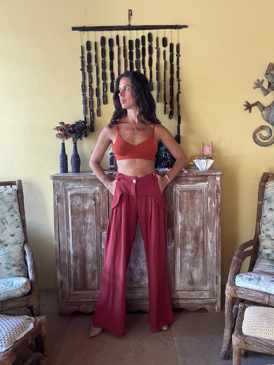 Calça Pantalona Terracota com Pregas – La Chacolê – tam 38