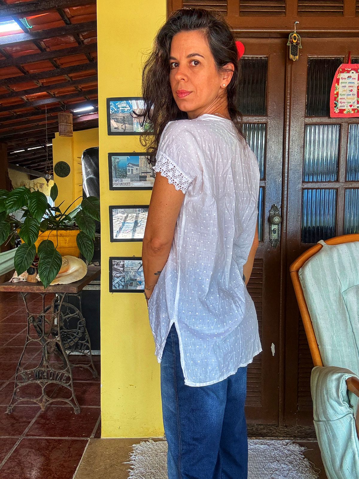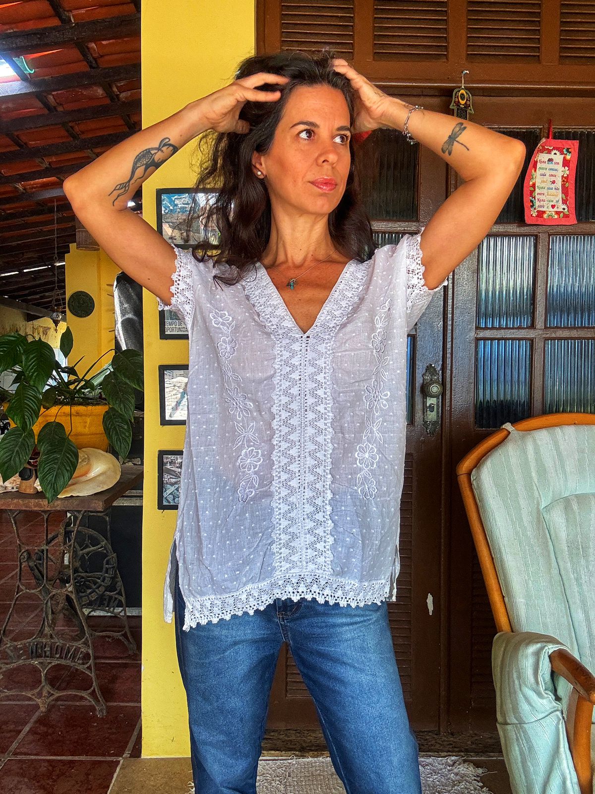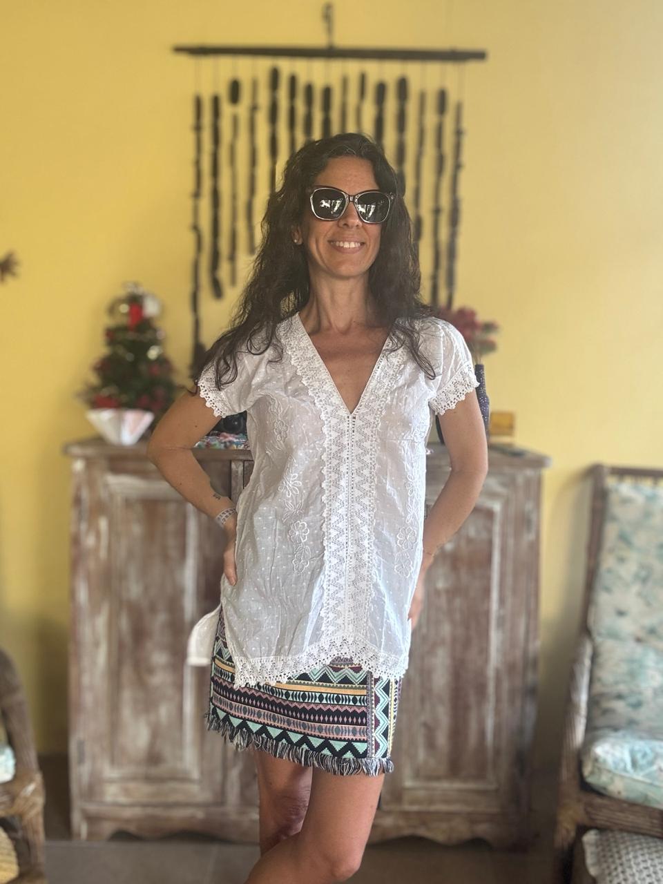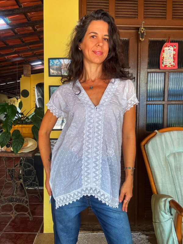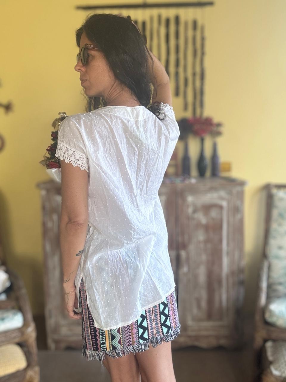 Camisa/Beca branca com bordados – tam M