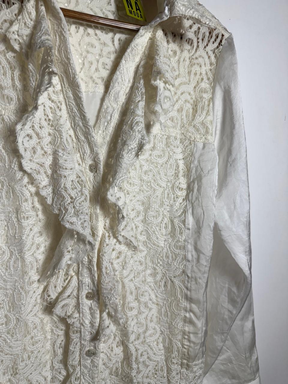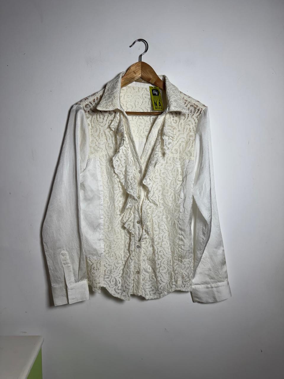 Camisa de manga comprida branca com renda e babados – Hit – tam G