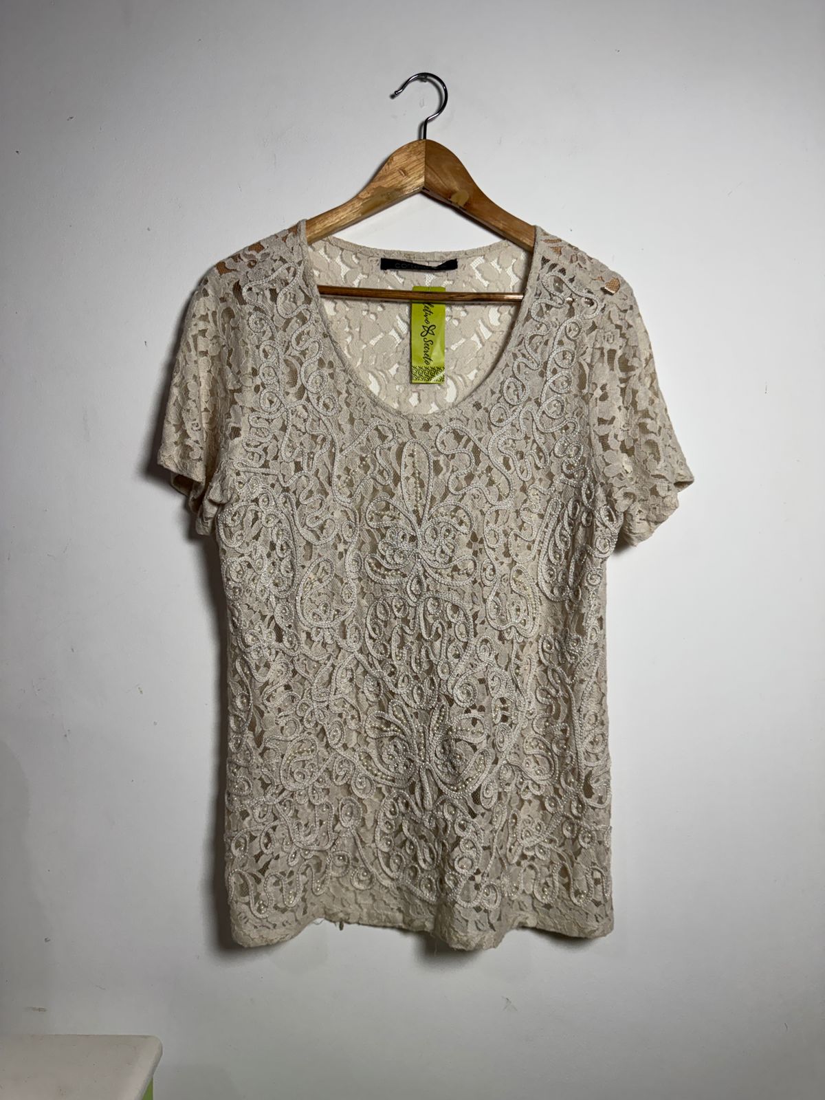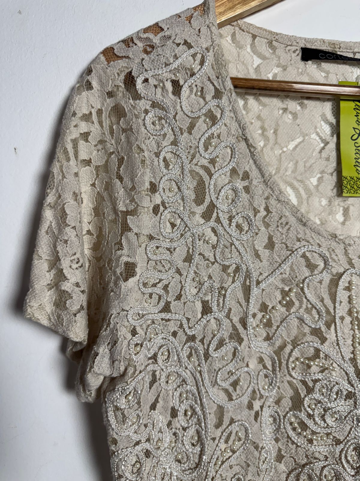 Camisa nude com bordados e pérolas – Cortelle – tam G