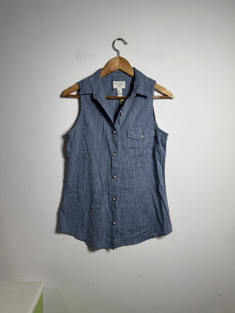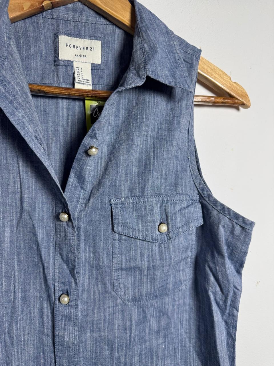 Camisa Sem Manga Azul Botões – Forever 21 – tam P
