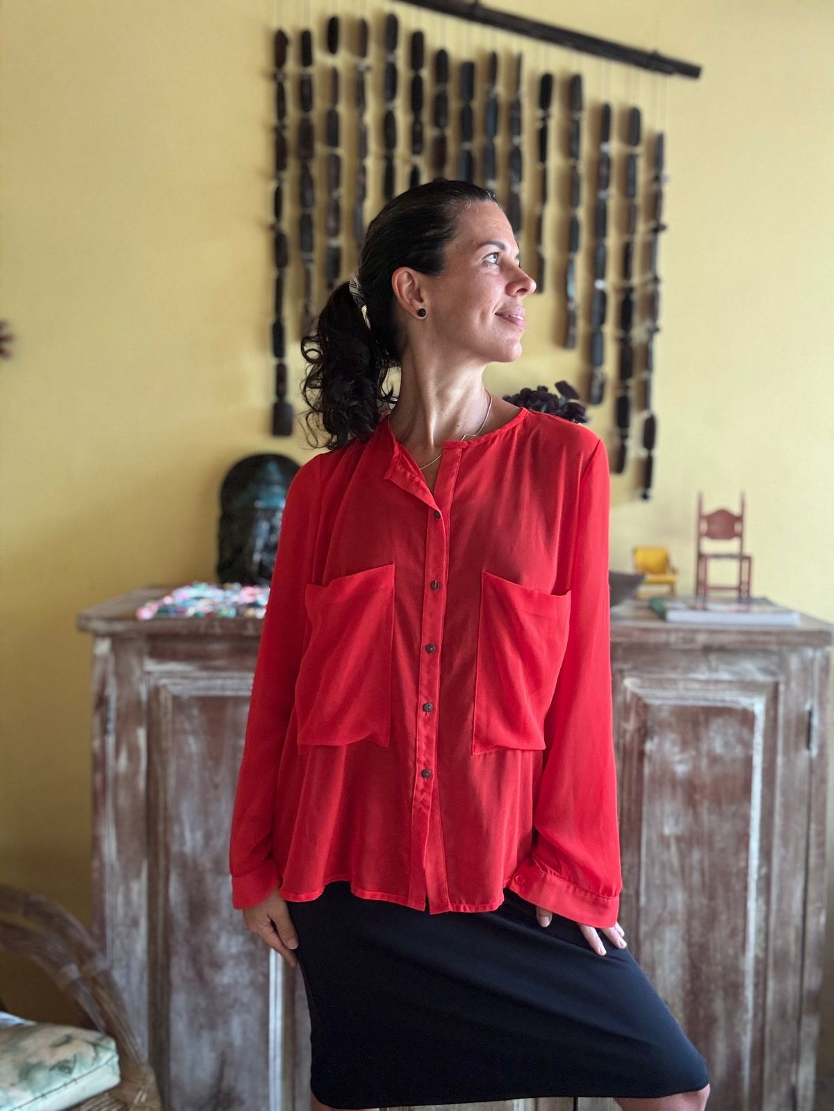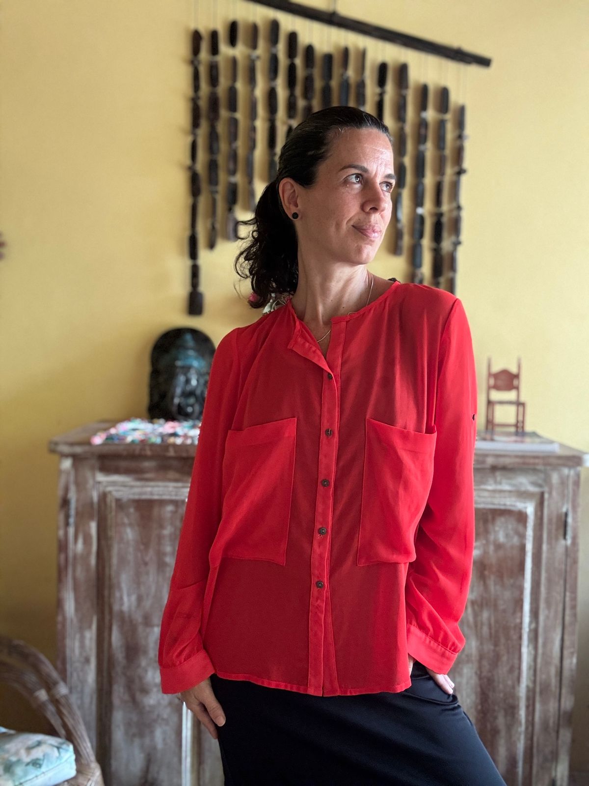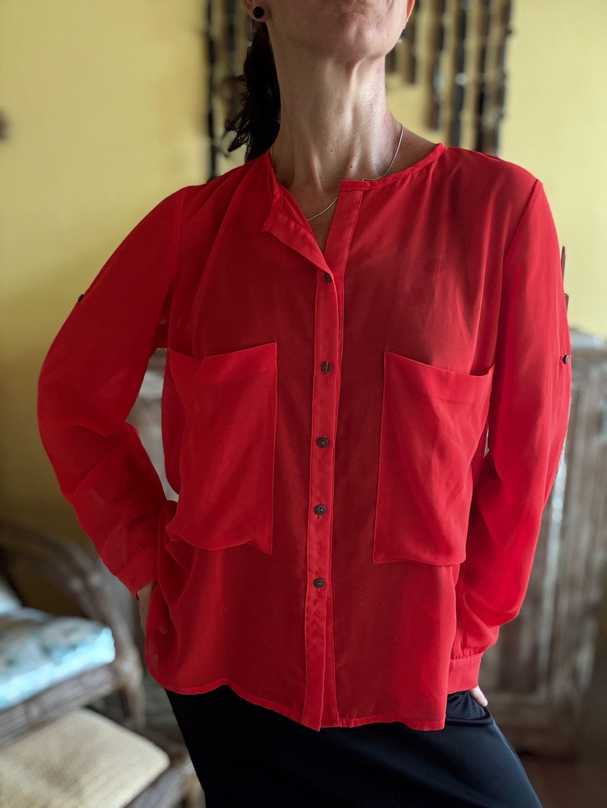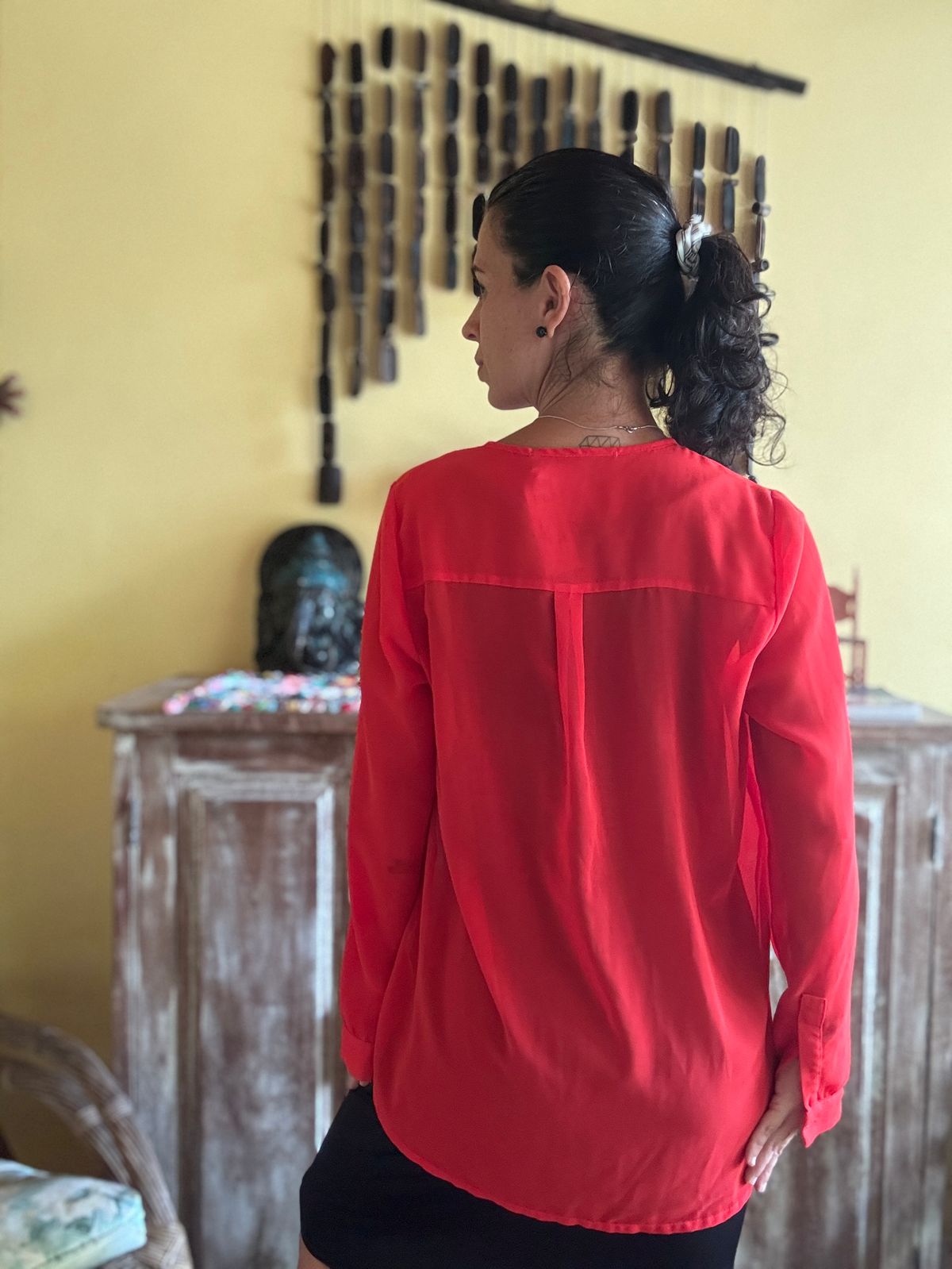 Camisa vermelha folgada com manga comprida – Espaço Fashion – tam P