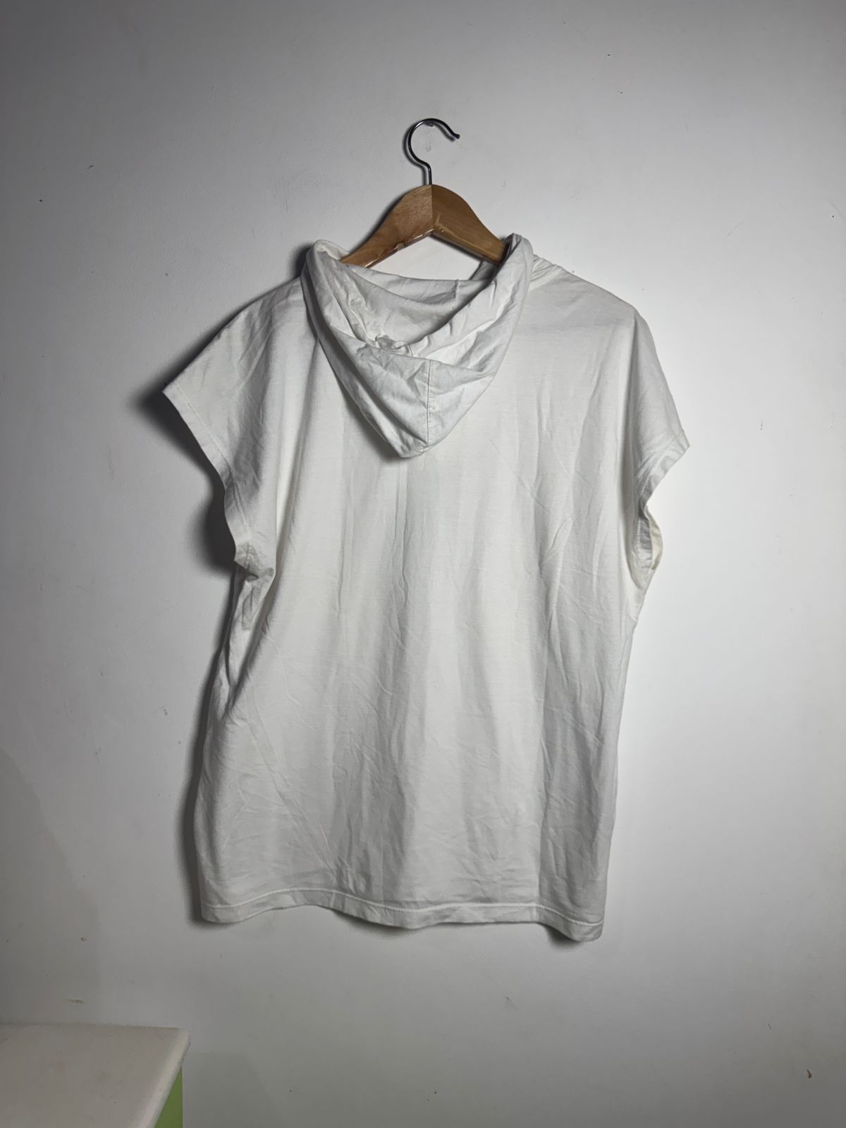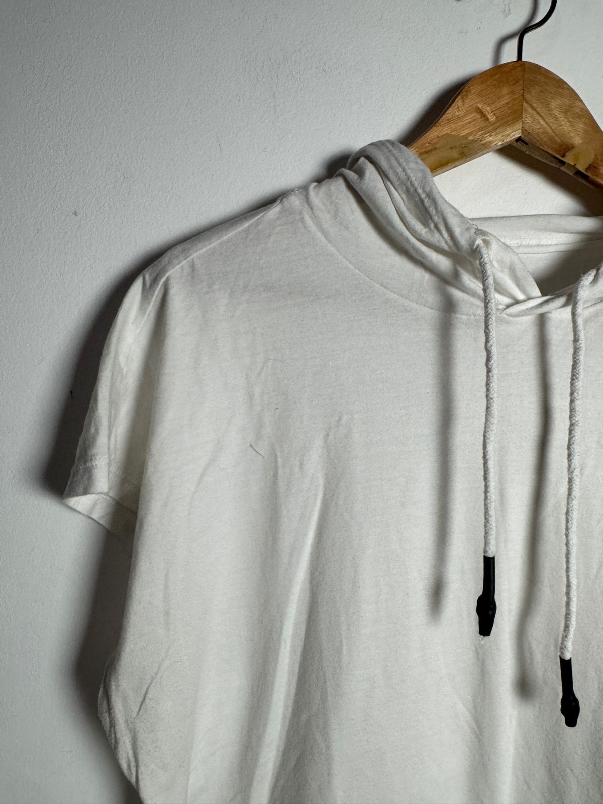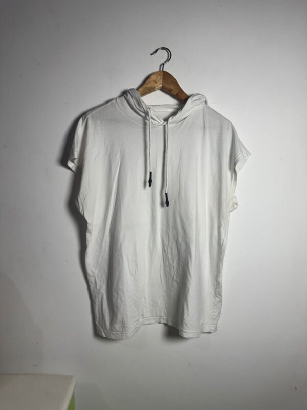 Aposte no estilo despojado com esta camiseta branca de capuz e manga curta. Perfeita para um look casual e confortável.