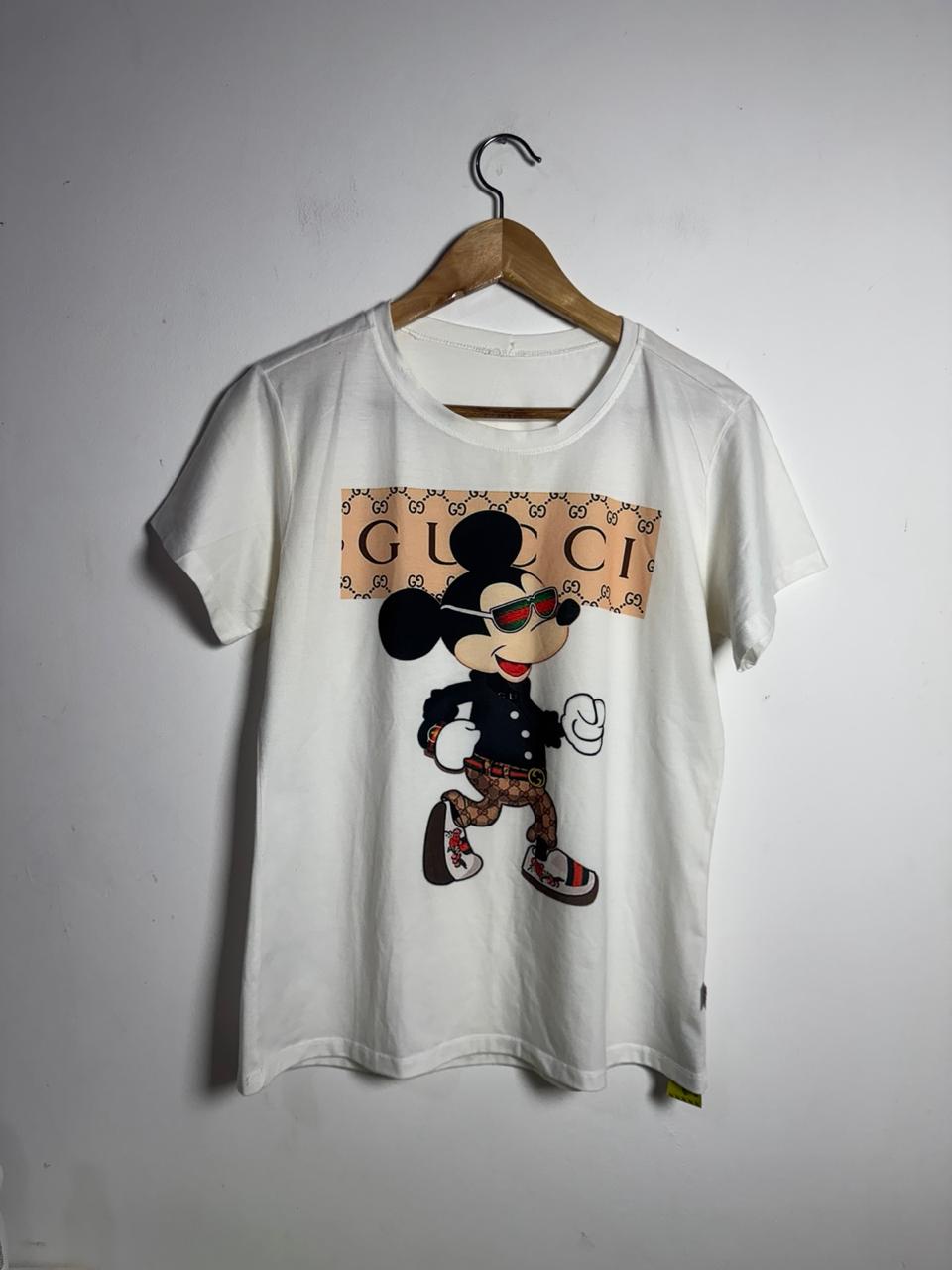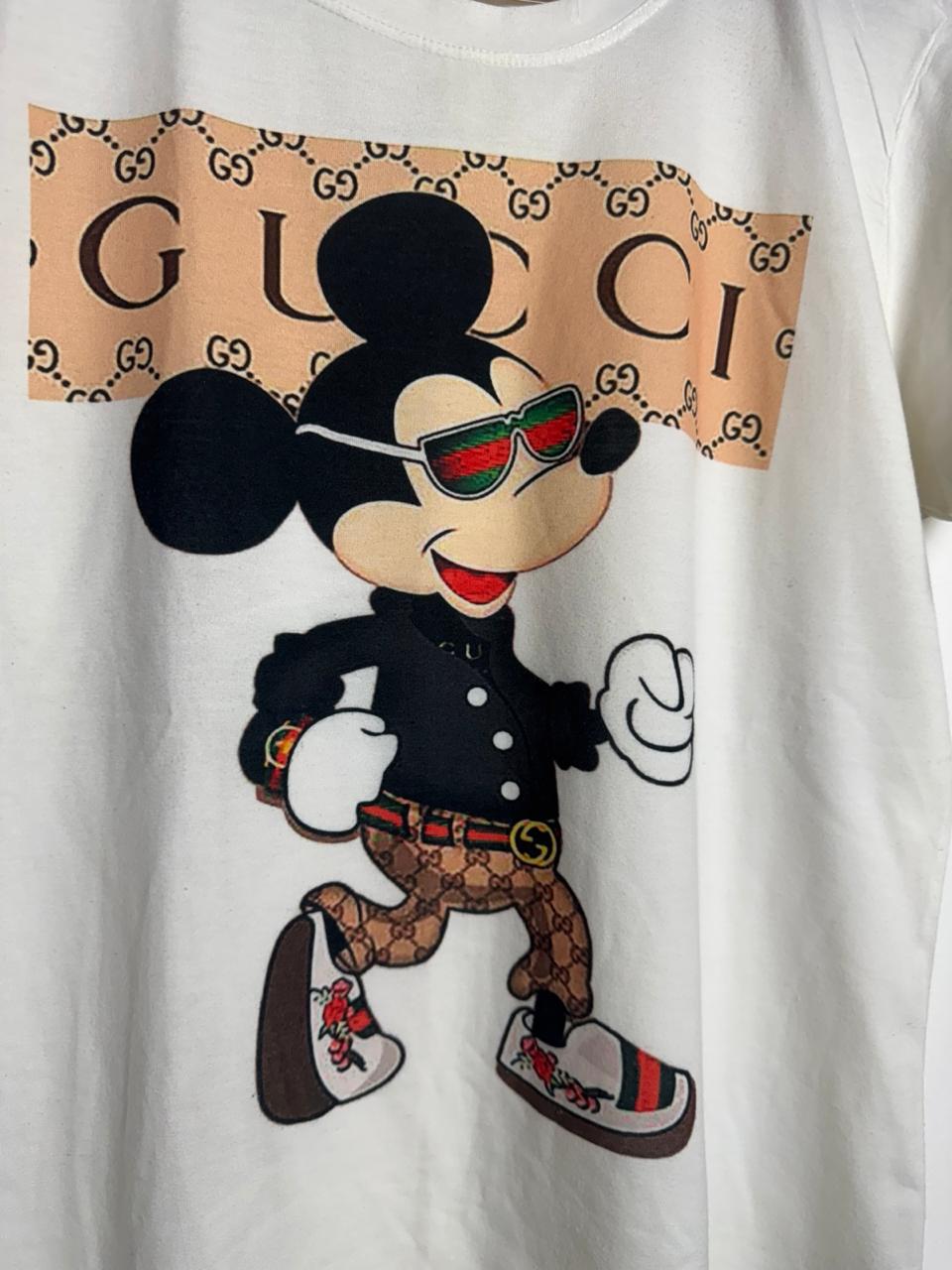 Camiseta branca estampa Mickey Mouse “Gucci” – Flor da Mata – tam G