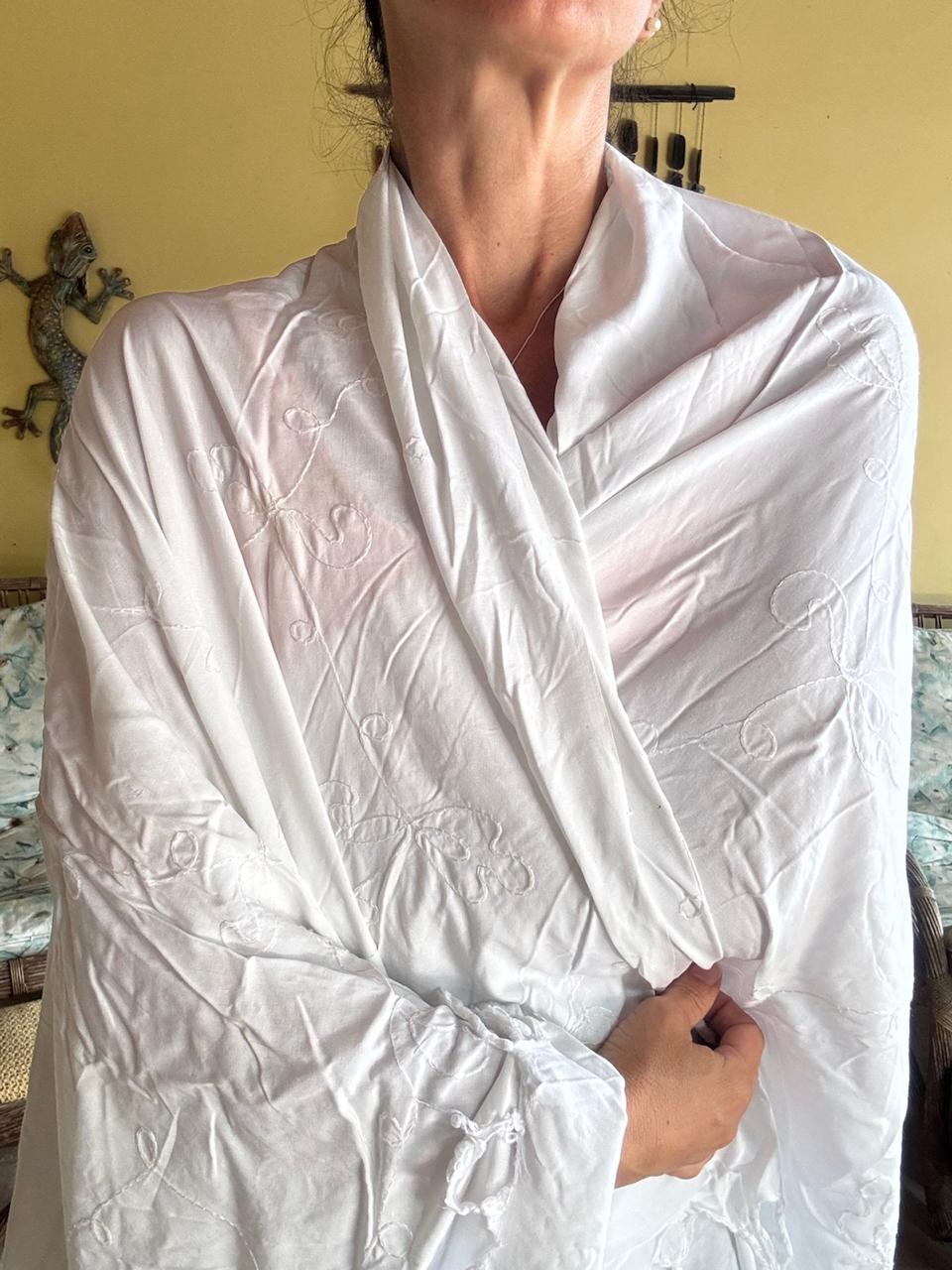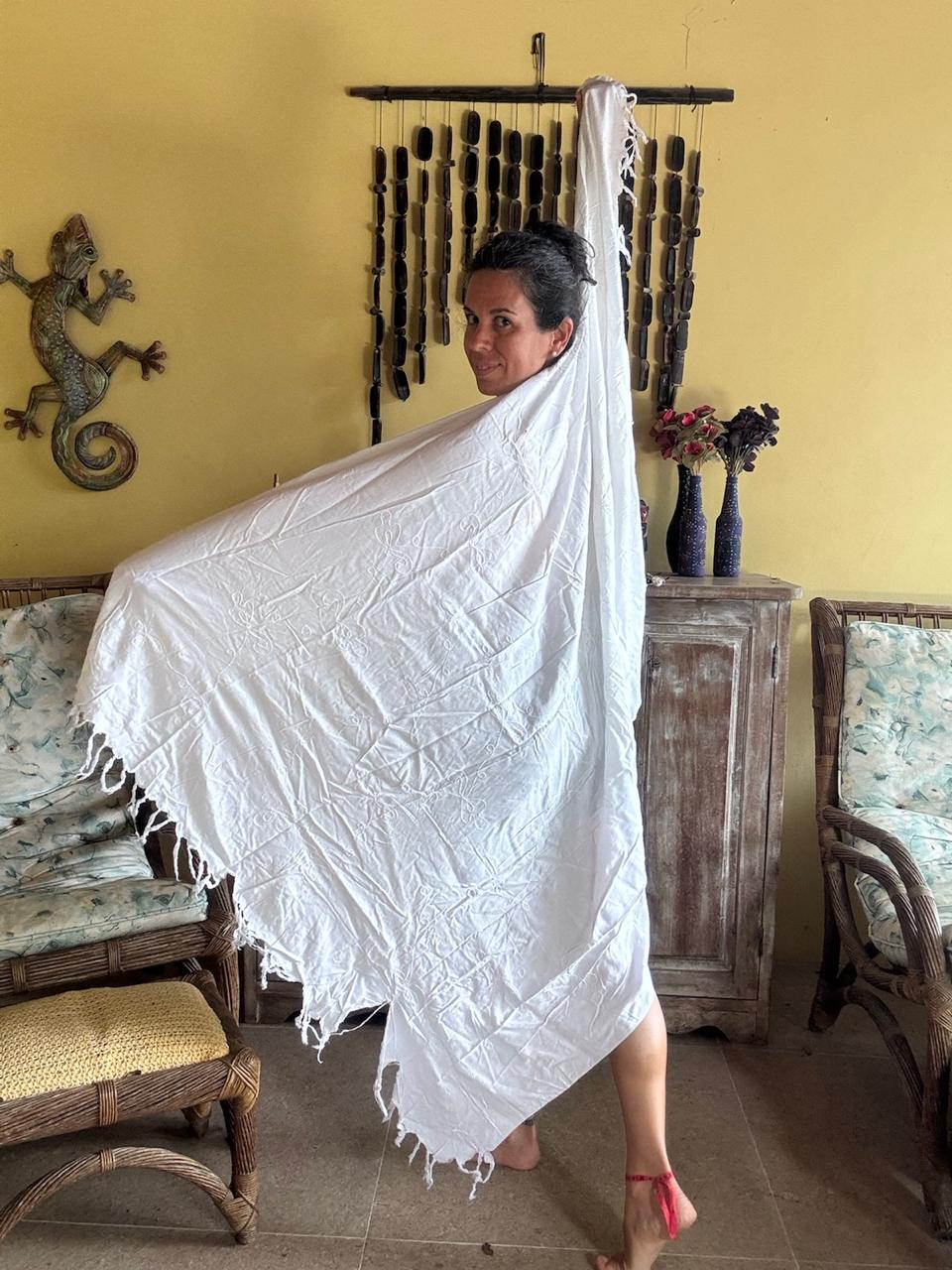 Canga Branca com Bordados e Franjas
