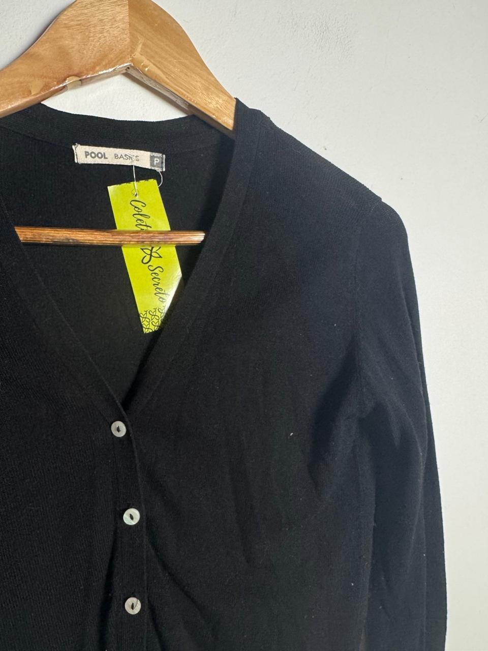 Cardigã Preto com Decote em V – Pool – tam P