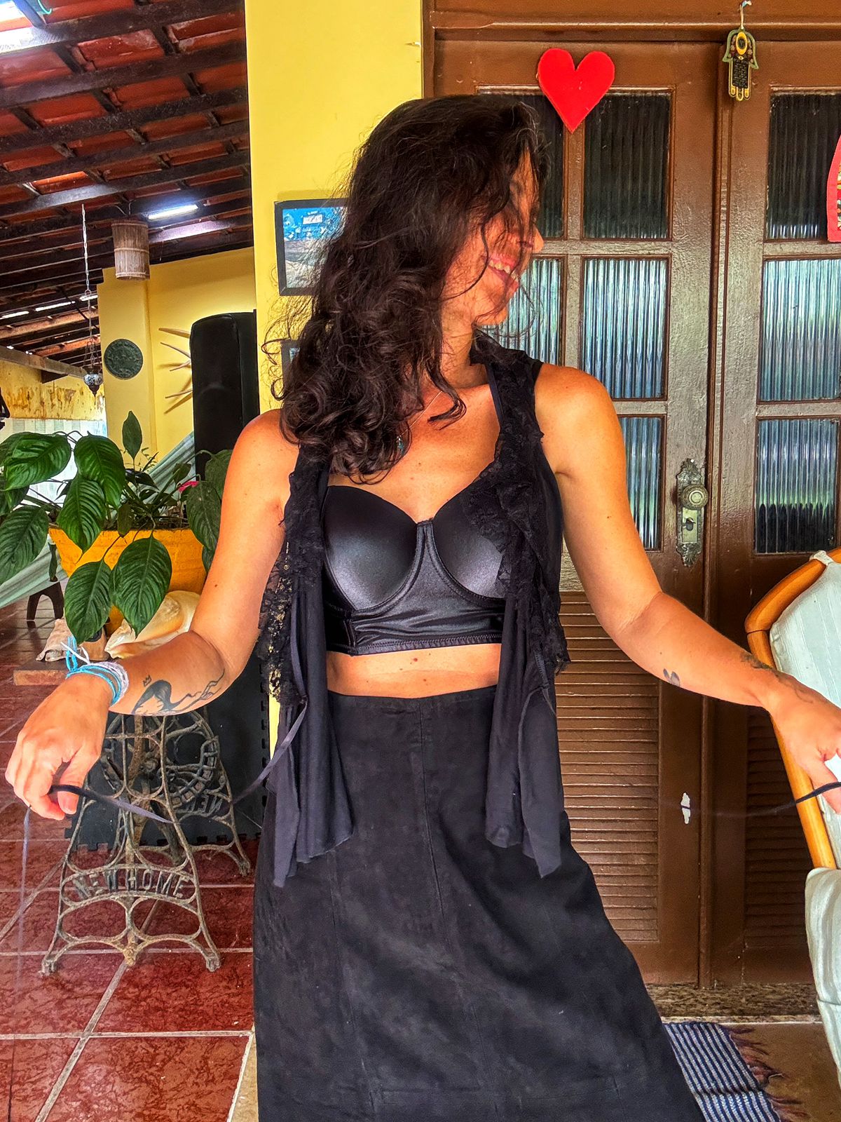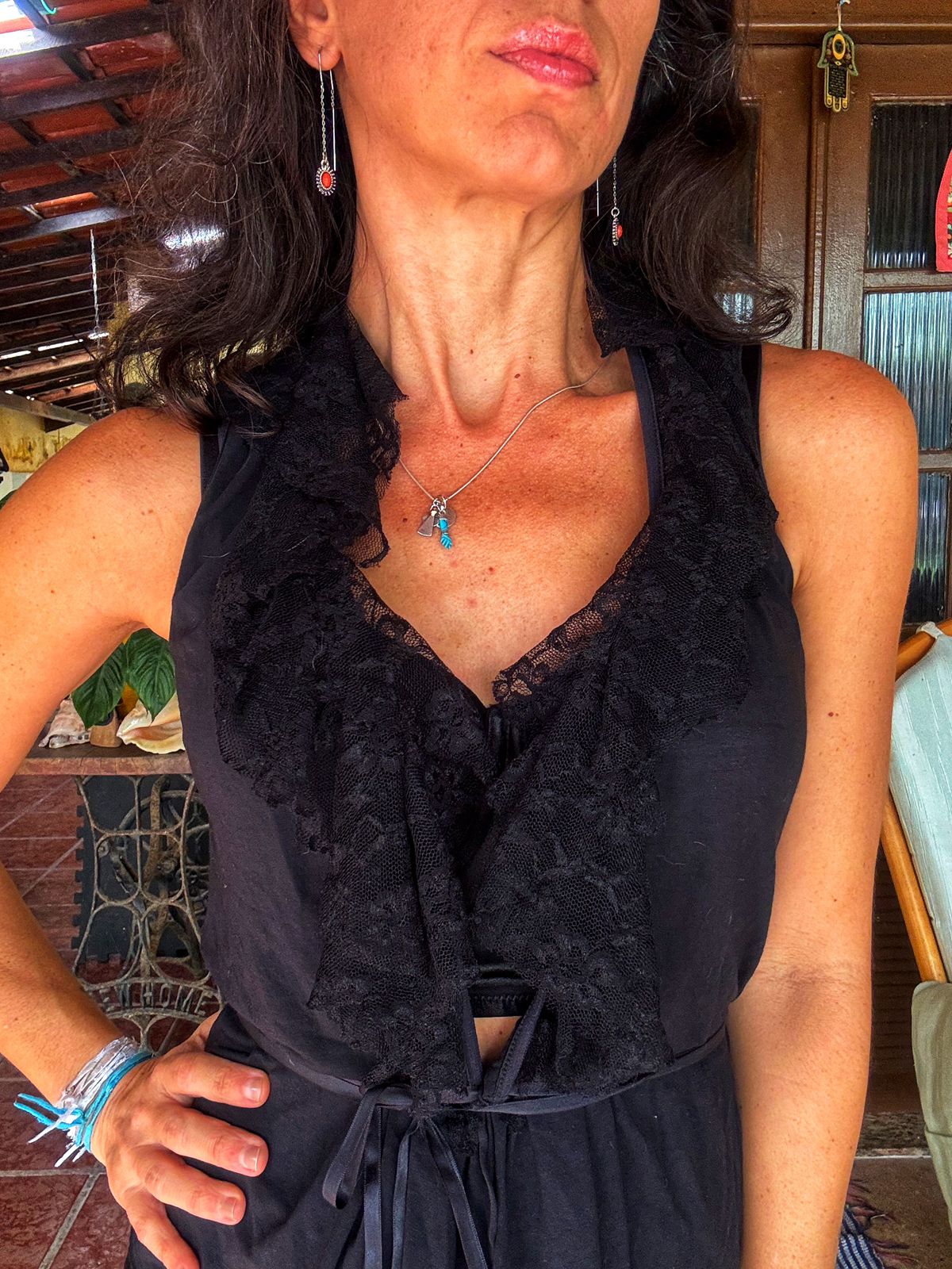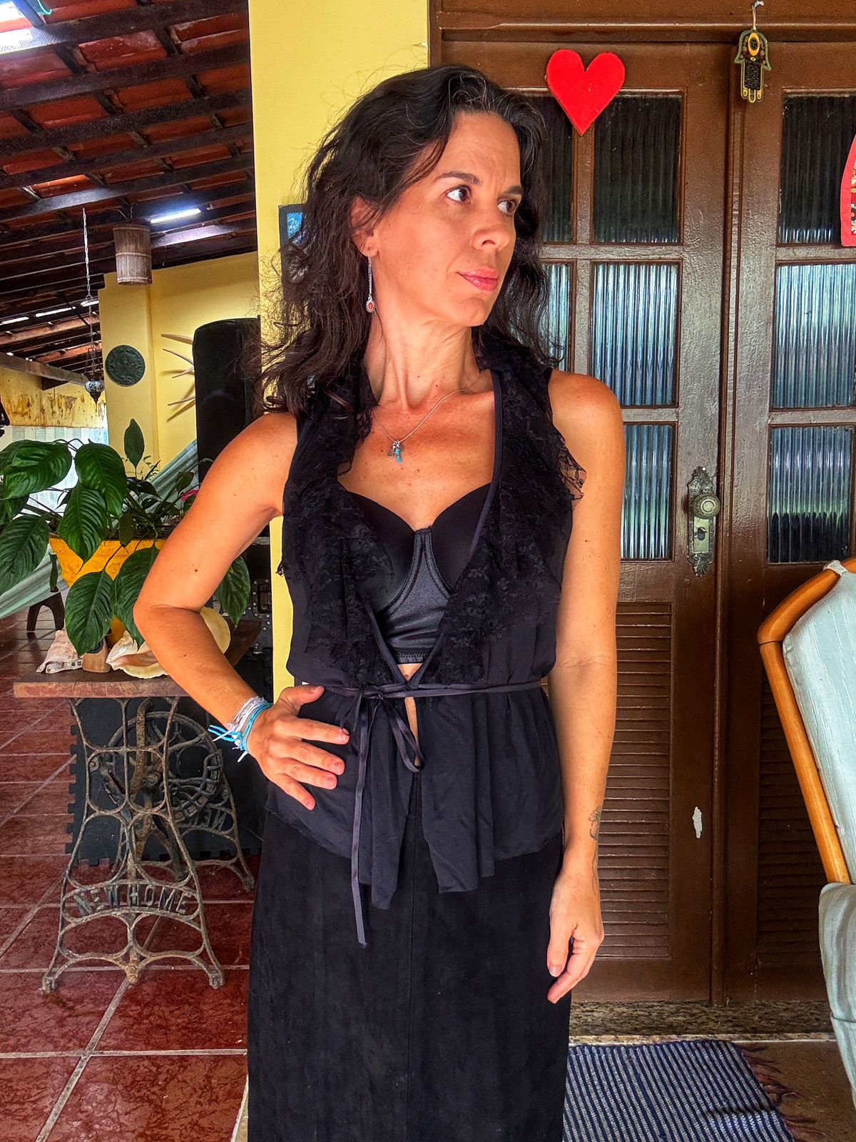 Colete / sobreposição preto com renda – Toli – tam G