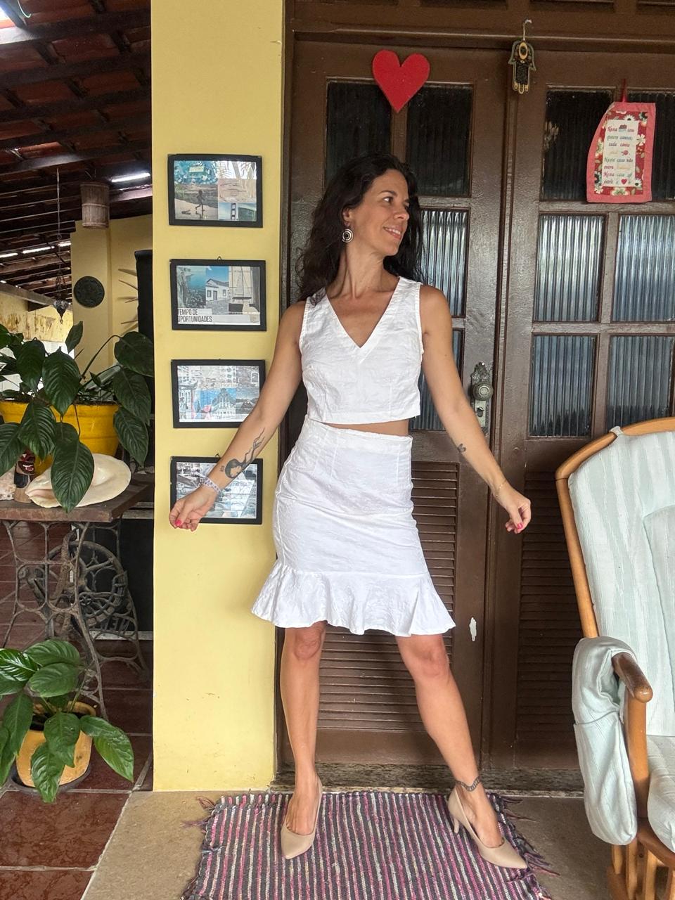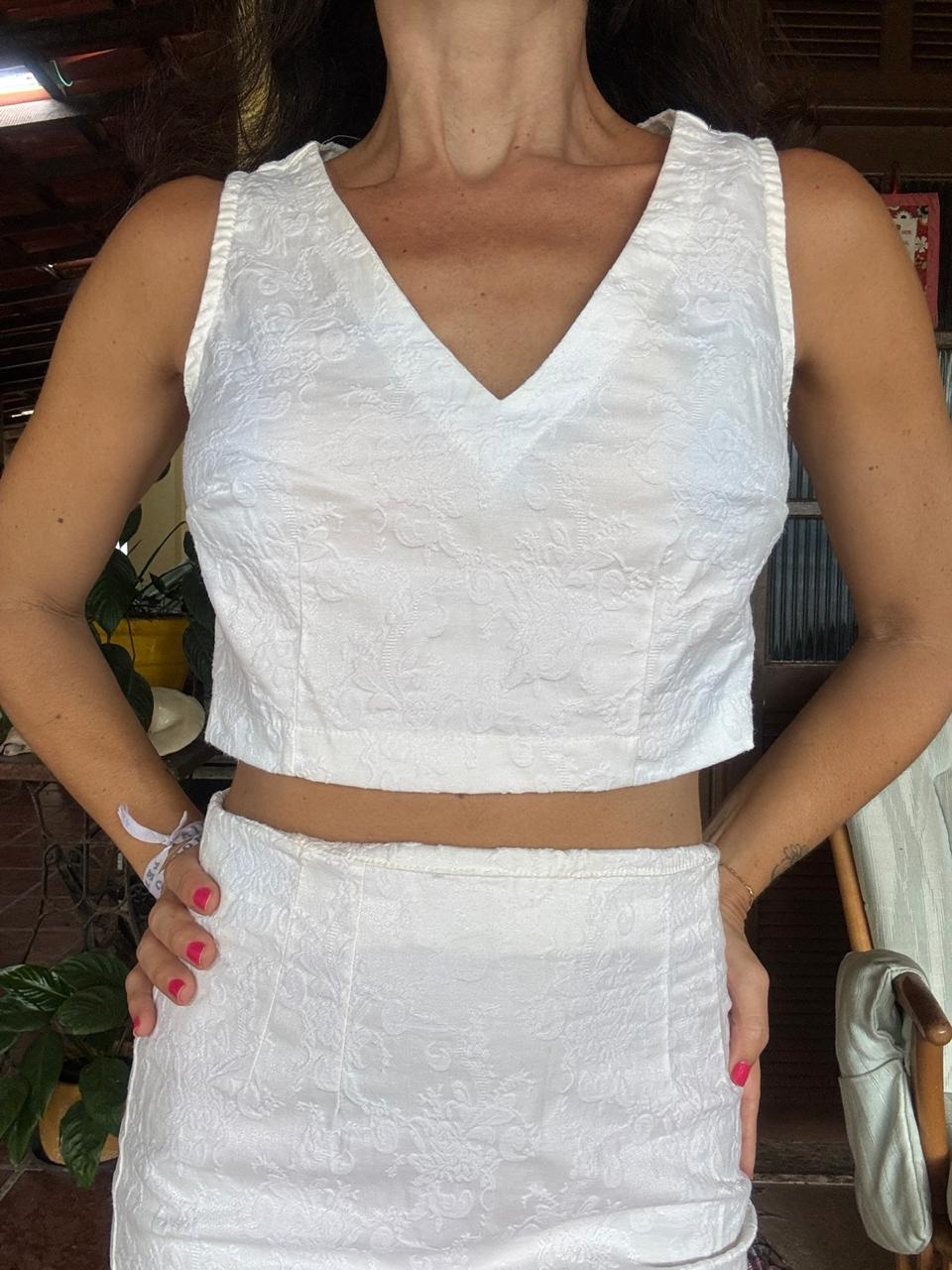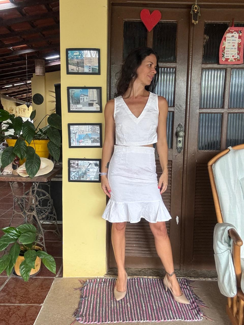 Conjunto Cropped & Saia Jacquard White – Swany – tam P