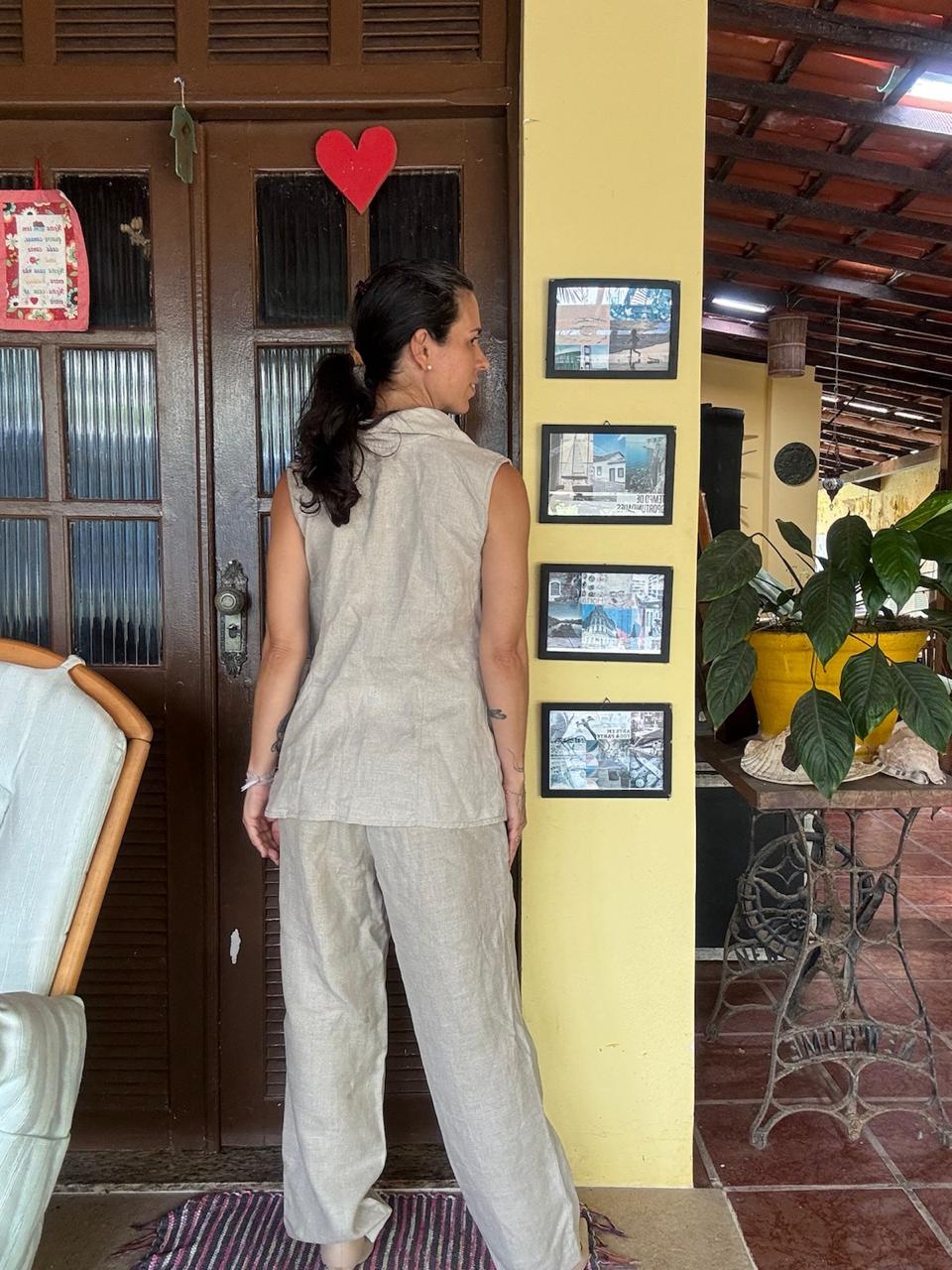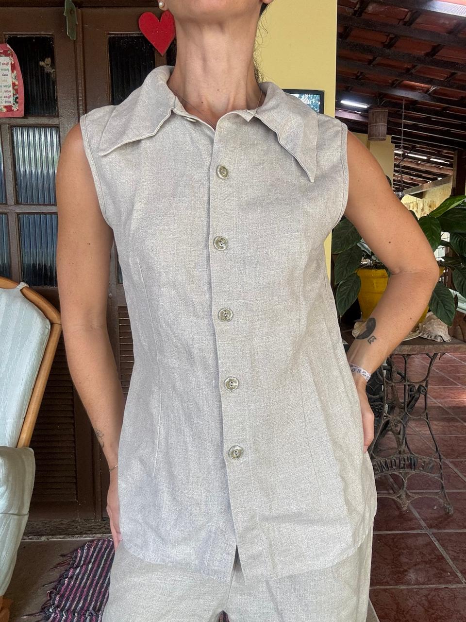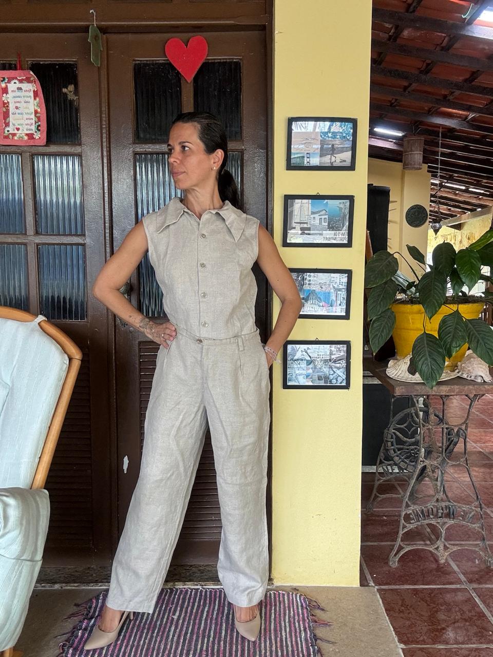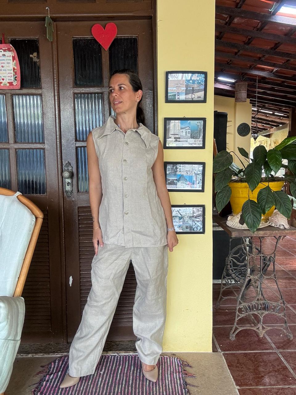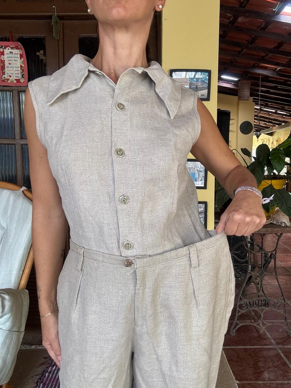 Conjunto de linho Colete e Calça Bege – Cheville – tam 44