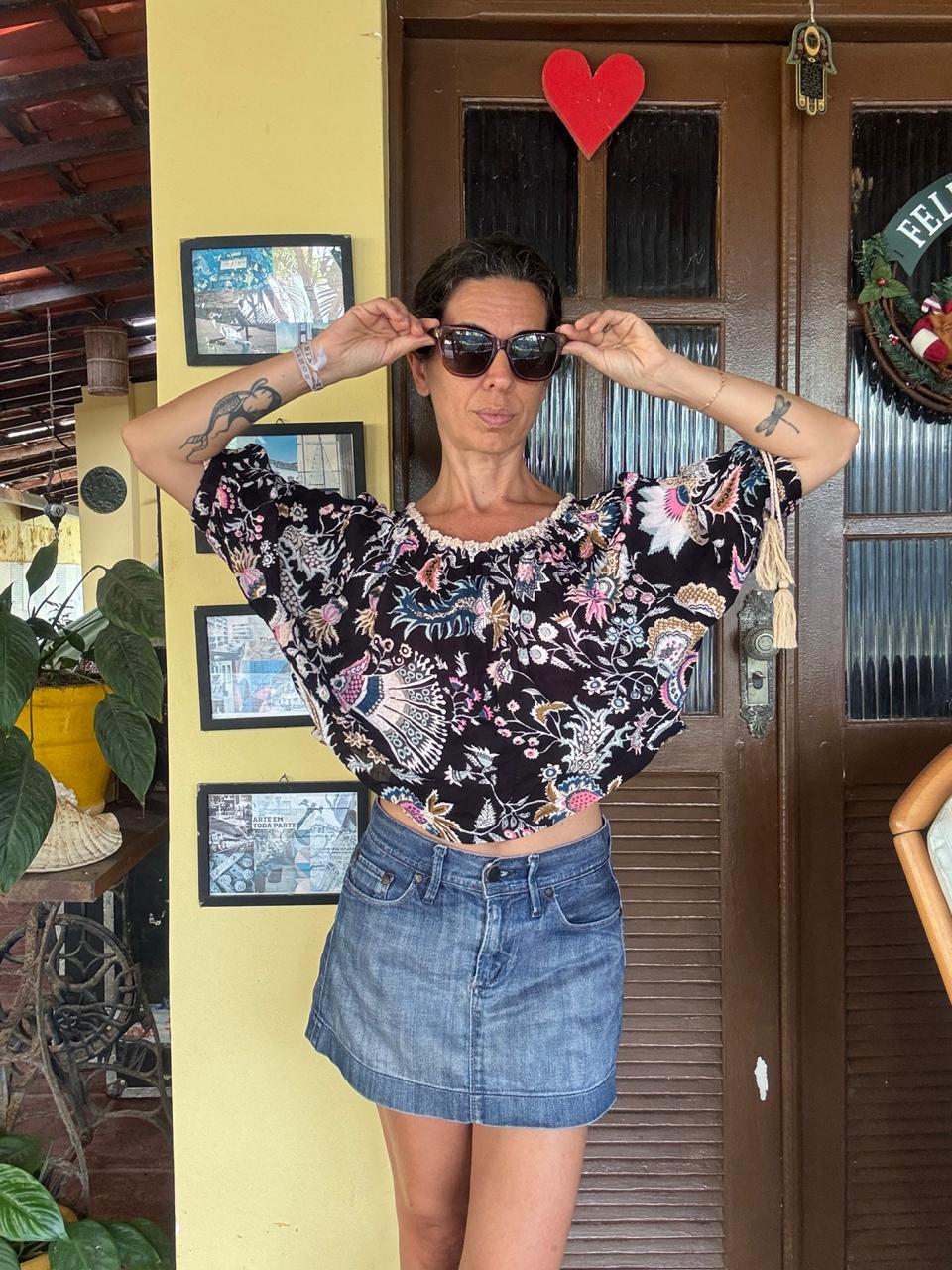Seja o primeiro a avaliar “Cropped Boho Preto Estampado com Detalhes em Tassel – Farm – tam P”