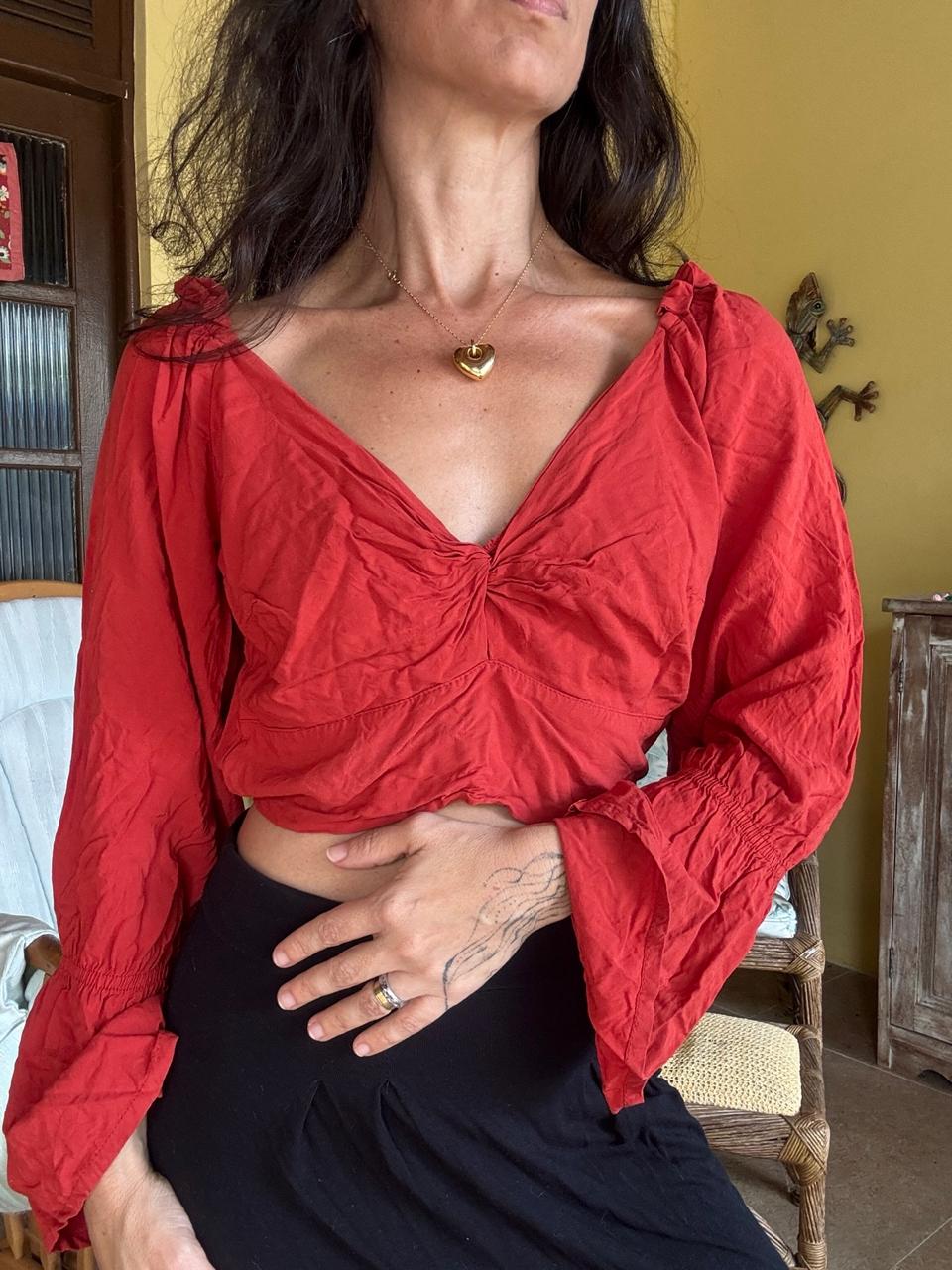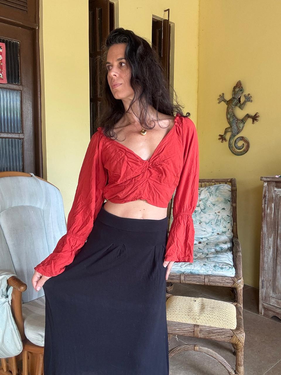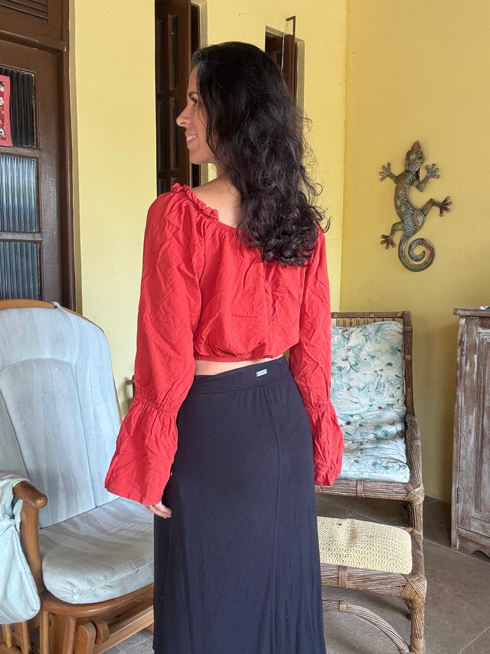 Cropped ciganinha vermelho boho – tam M
