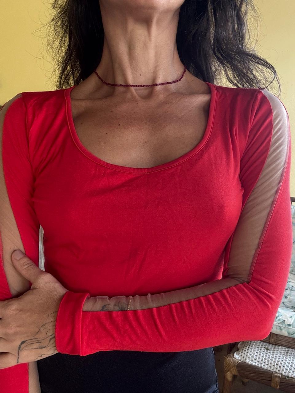 Cropped fitness vermelho de manga comprida – Planet Girls – tam M