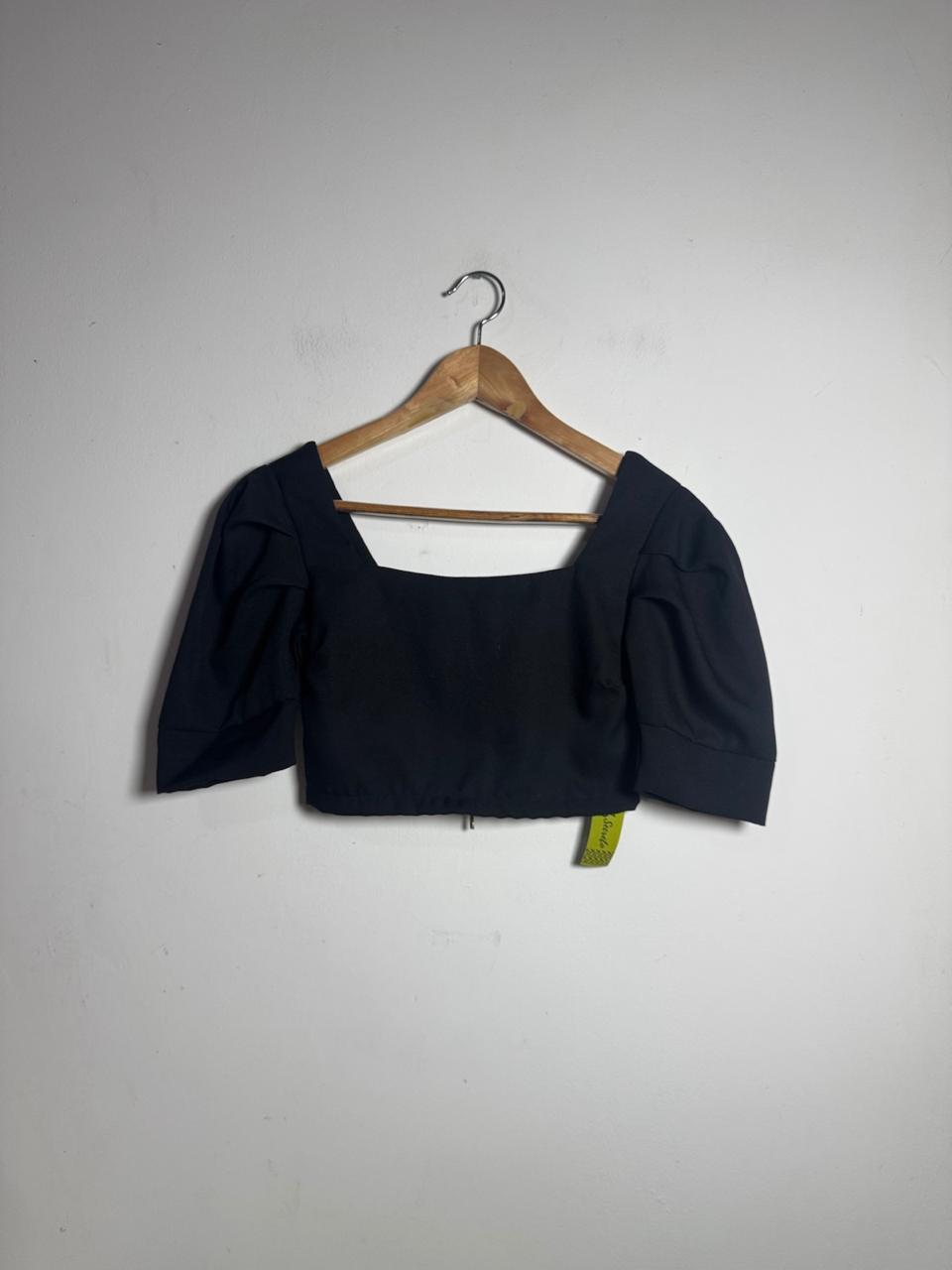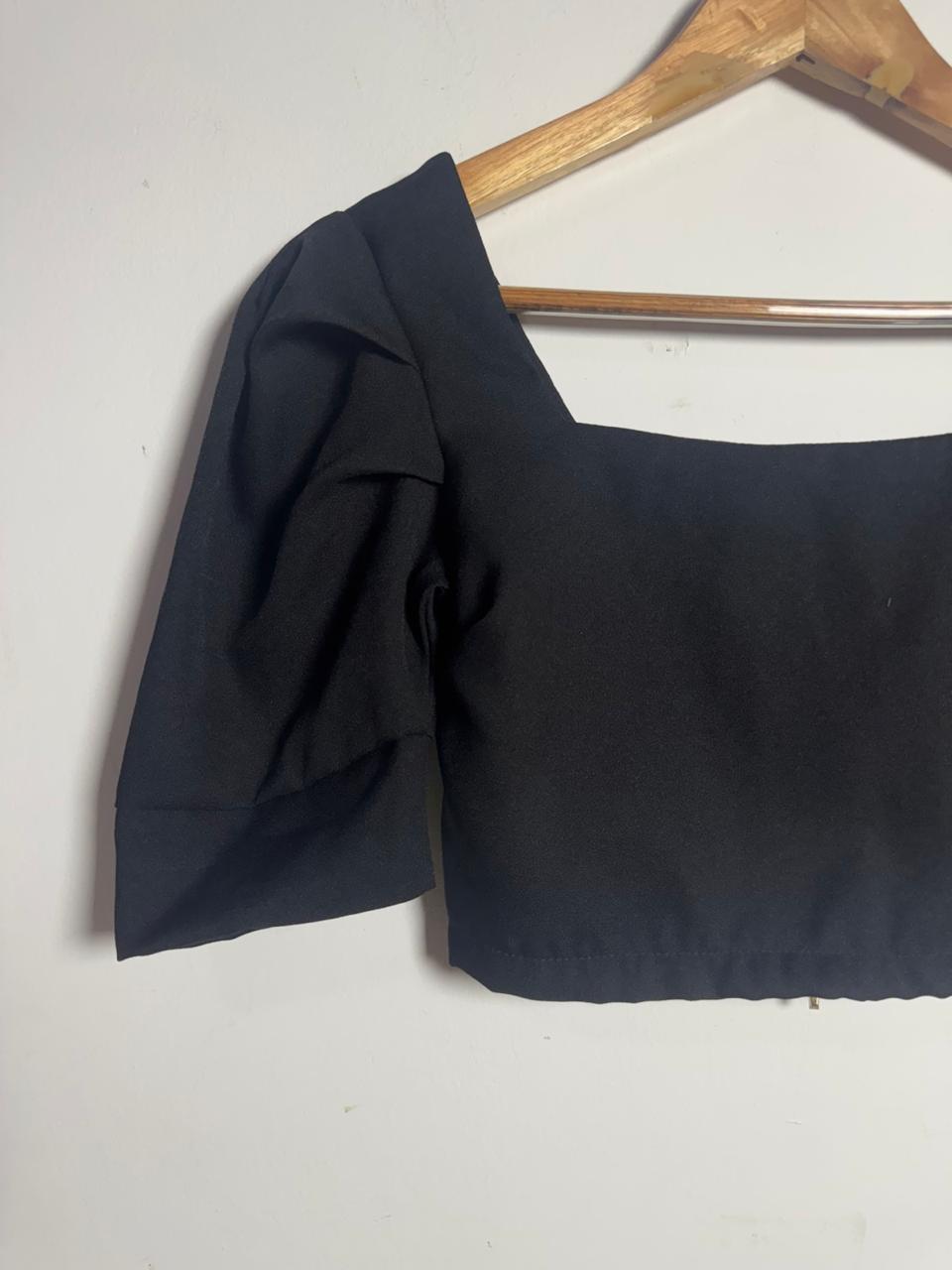 Cropped Preto com Mangas Bufantes – Donna Fashionista – tam P