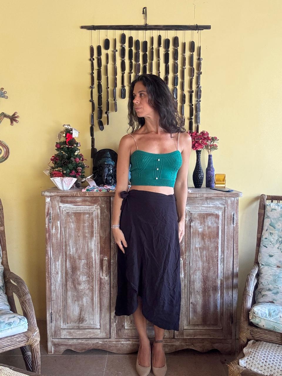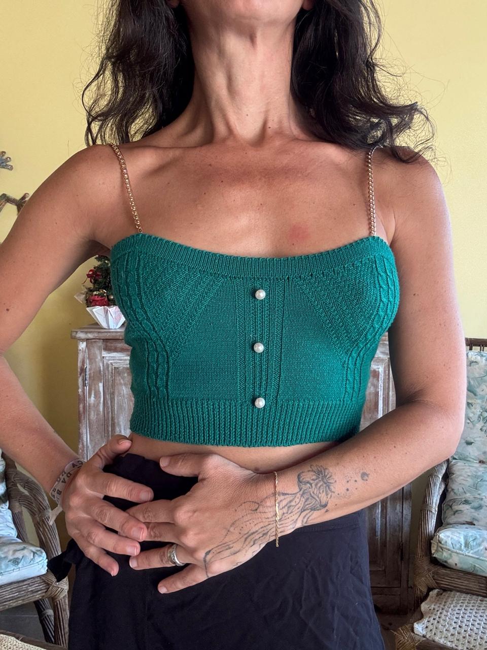 Cropped Tricô Verde Esmeralda com Alças Corrente – tam 38