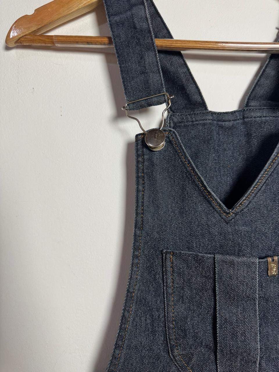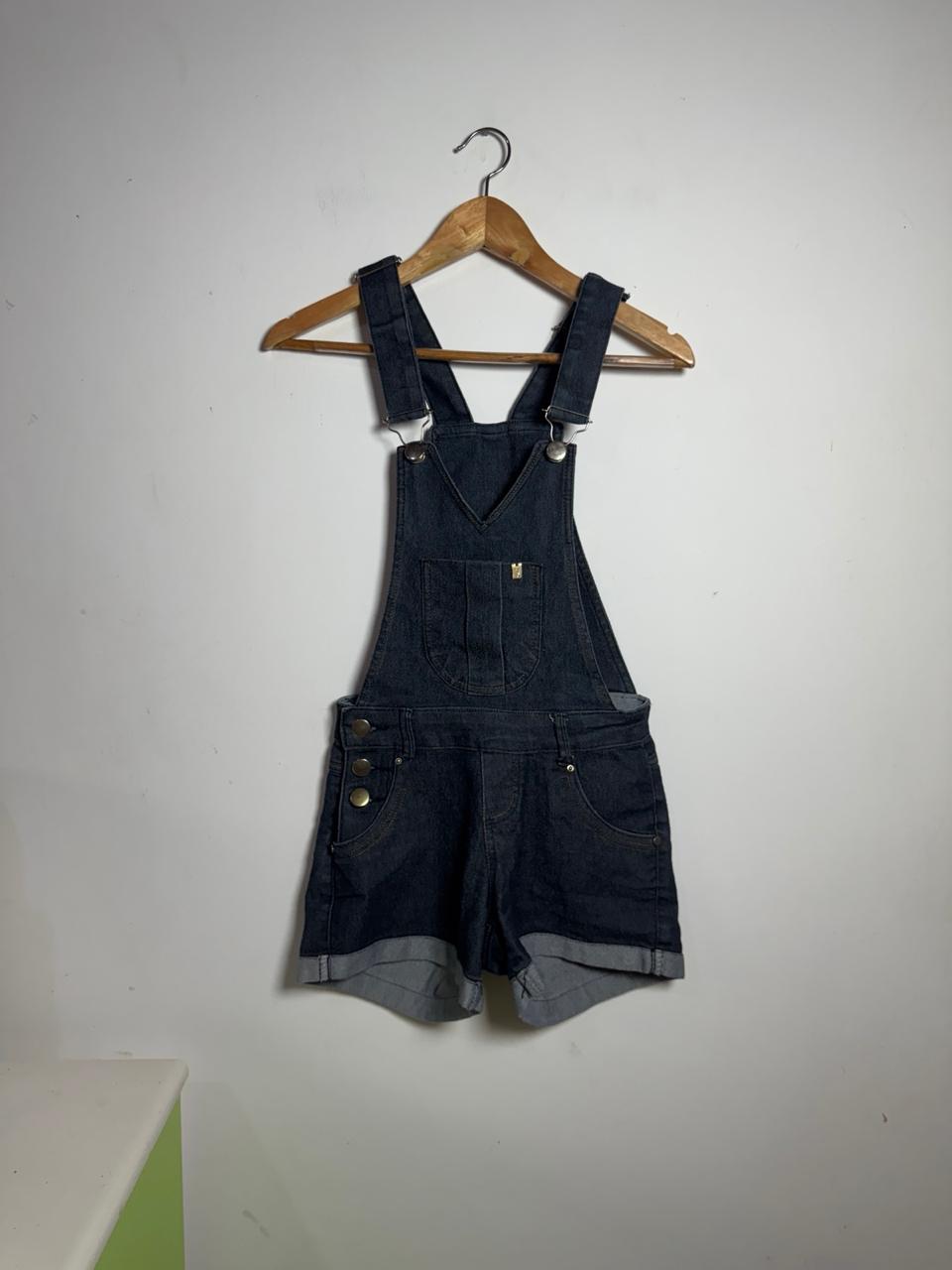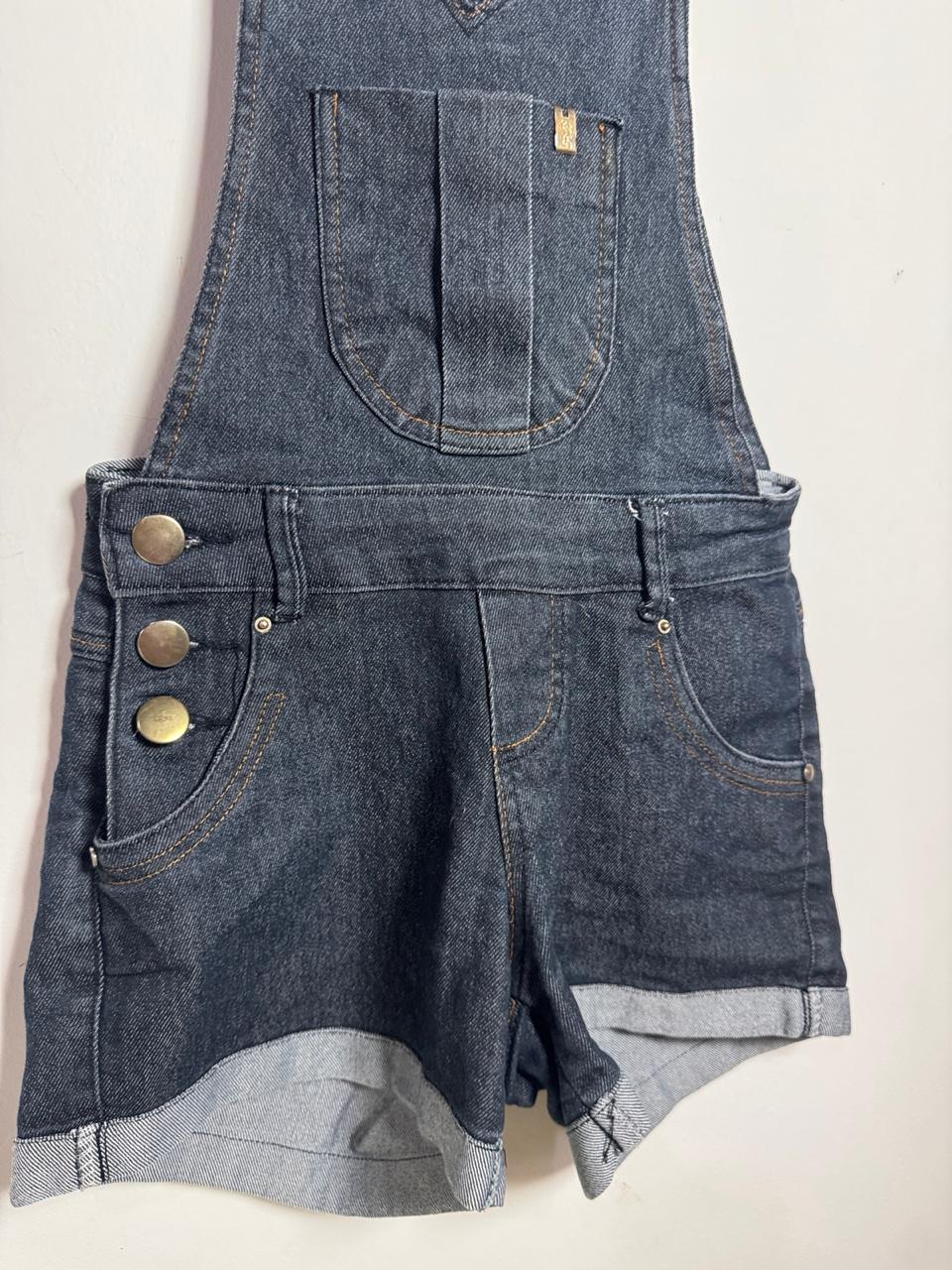 Jardineira / macaquinho jeans escuro – Flor e Bela – tam 36