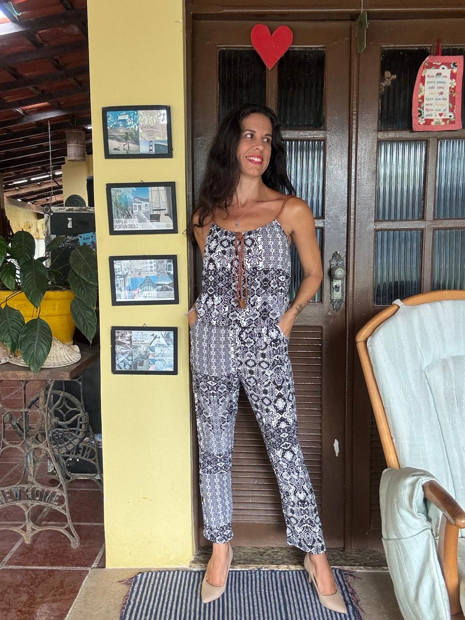 Macacão Longo Estampado P&B – HeZ – tam G