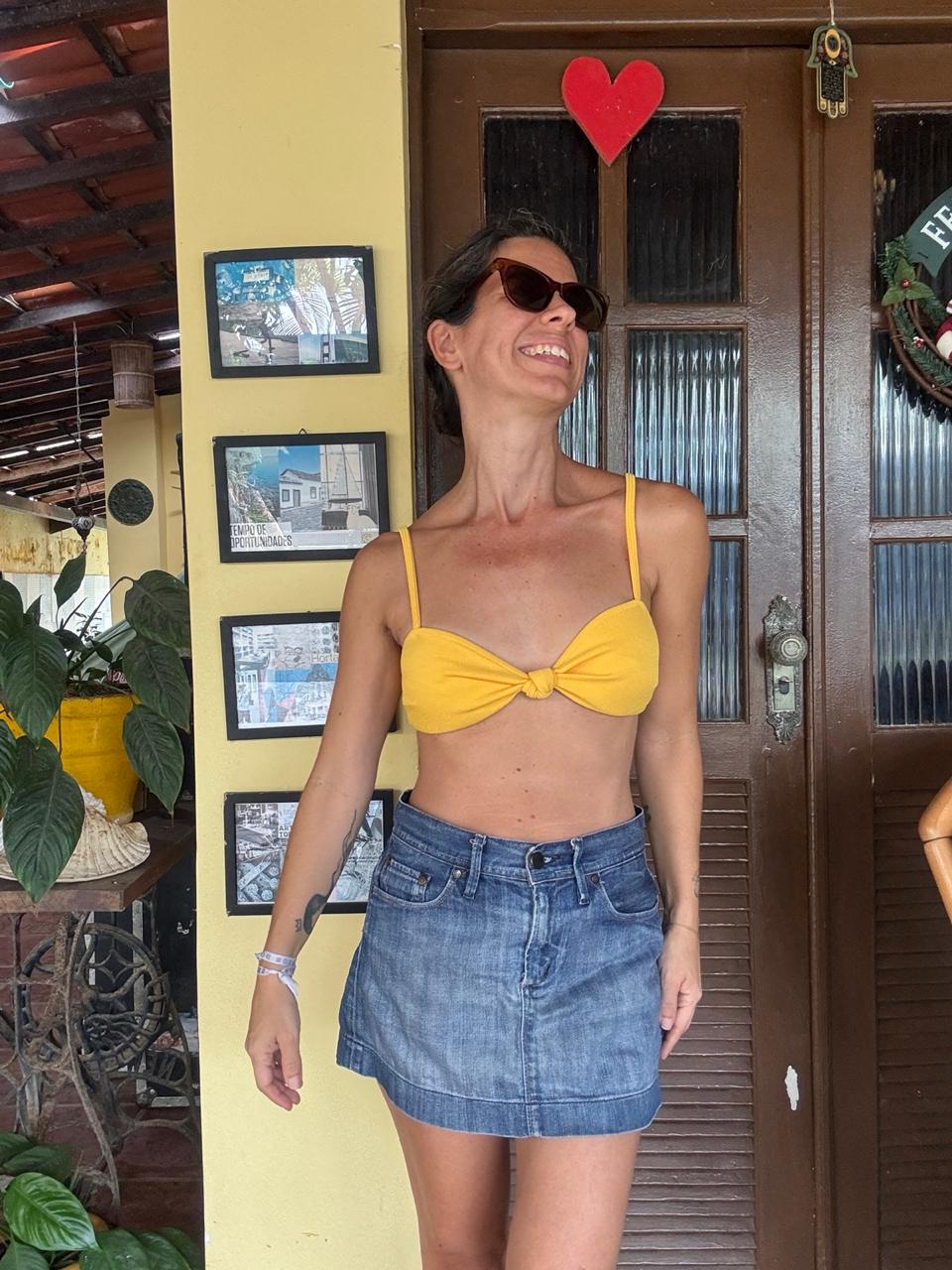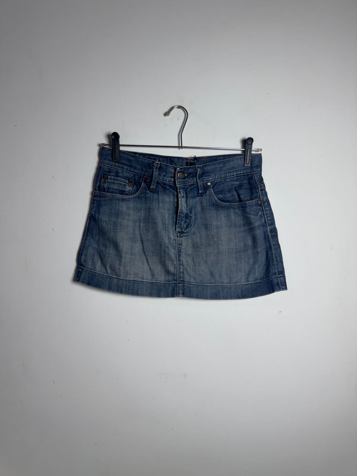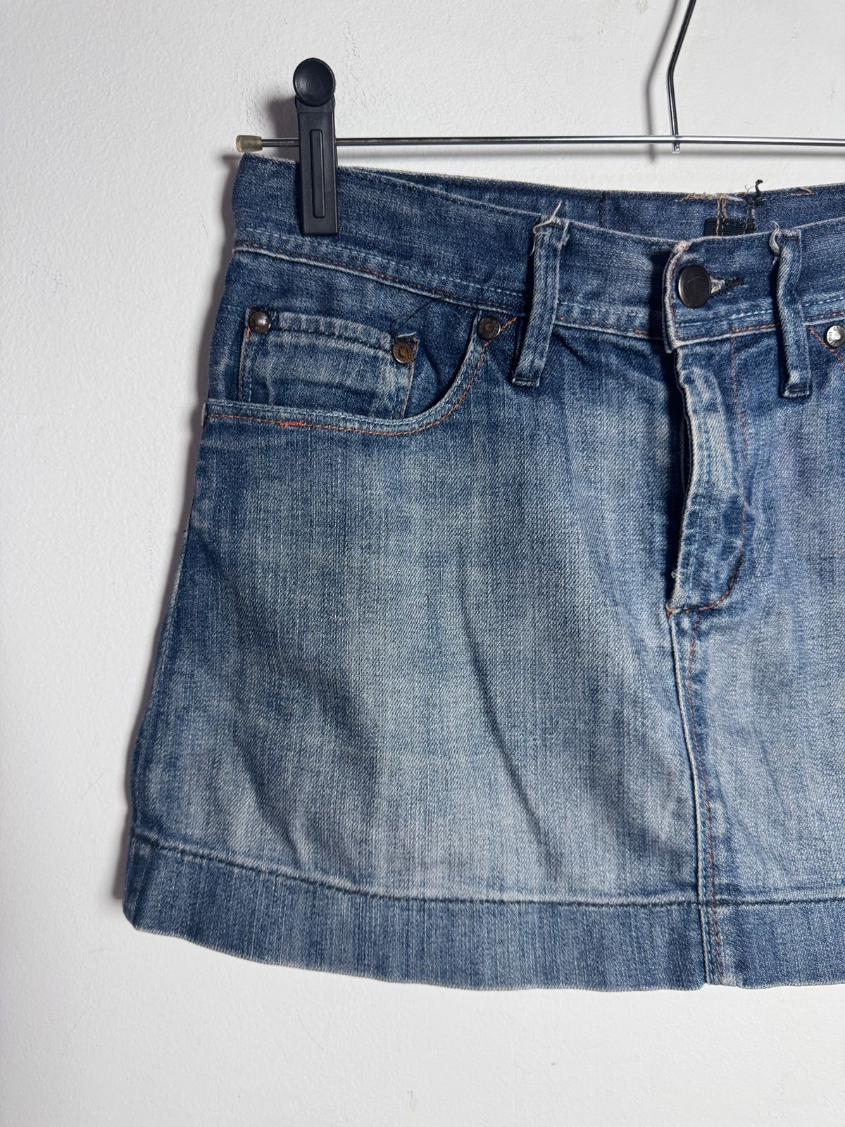 Saia com bolsos traseiros funcionais e barra com acabamento simples. Peça versátil de comprimento mini que combina facilmente com produções casuais de verão.