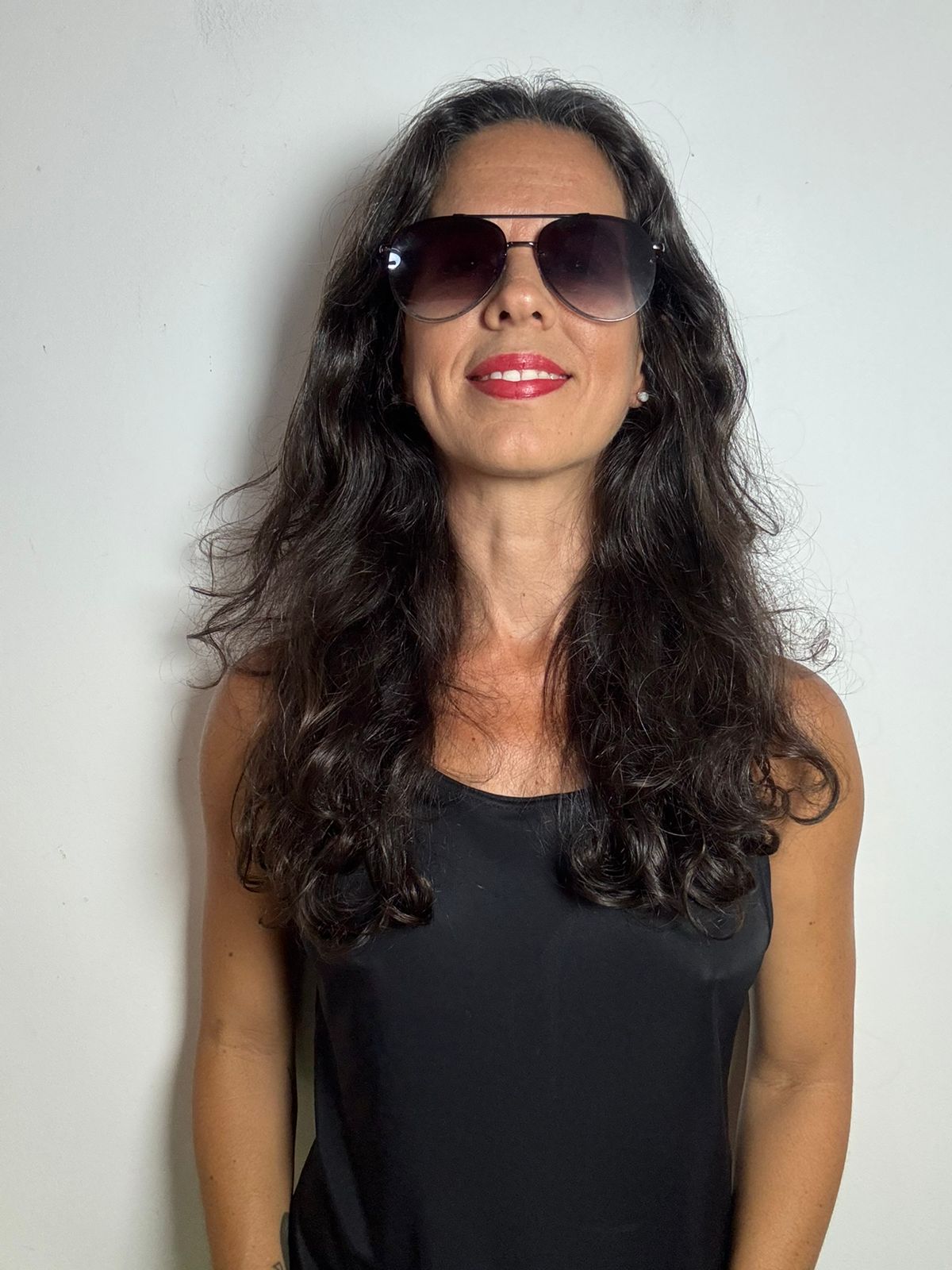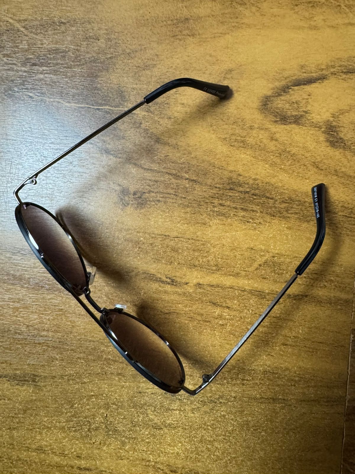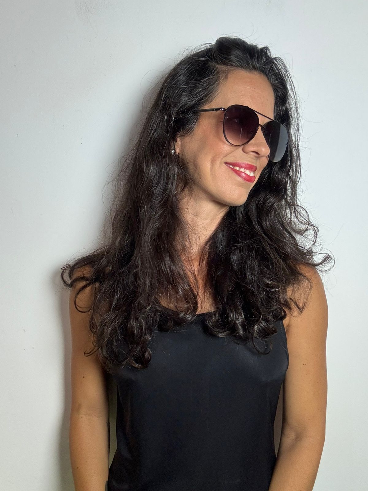 Óculos com lentes escuras degradê e armação fina de metal preto. Modelo clássico e versátil para complementar looks casuais ou sofisticados nos dias de sol. Estilo Ray Ban