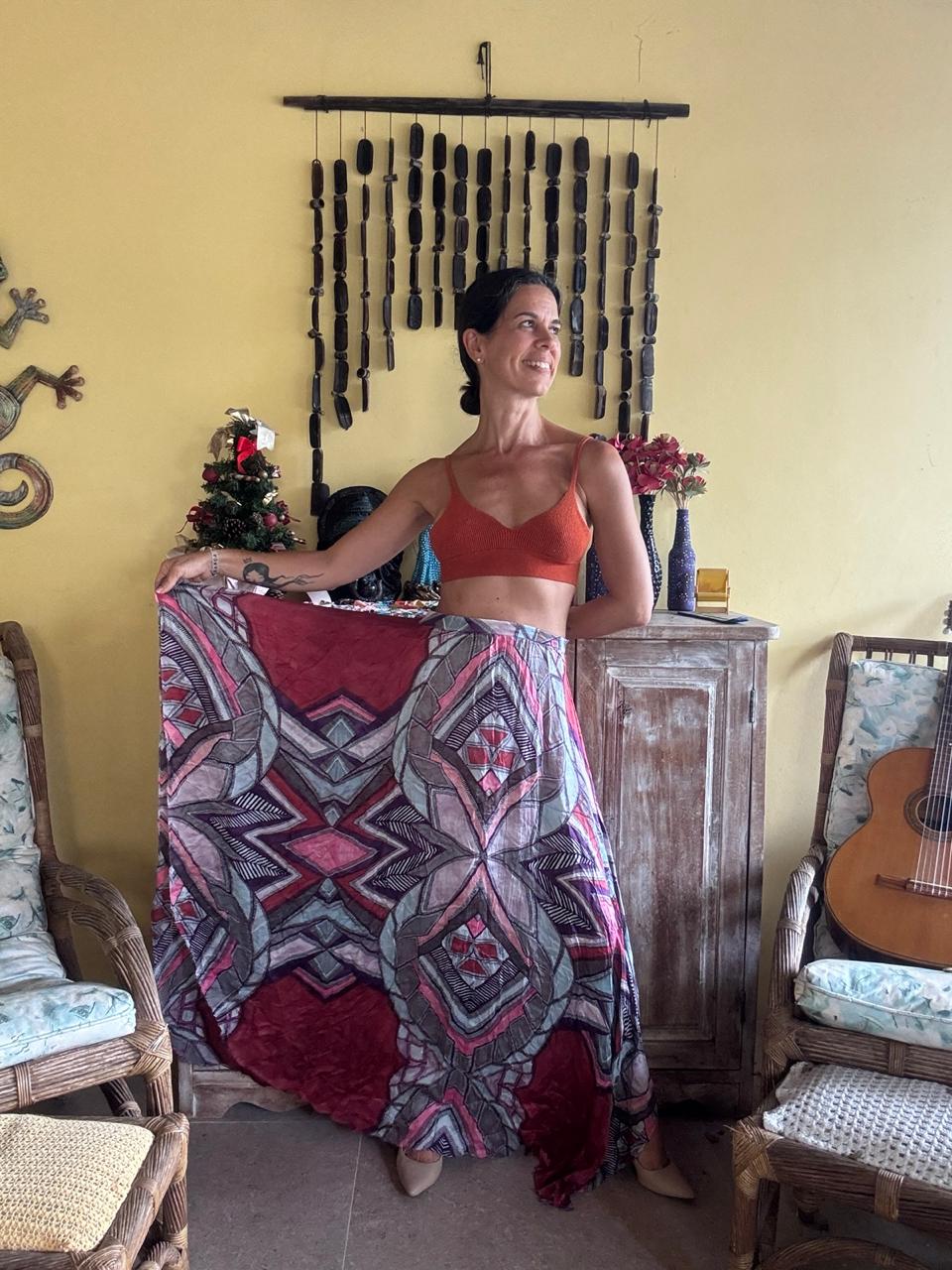 Saia Longa Estampada Étnica Multicolorida de Seda – tam 38