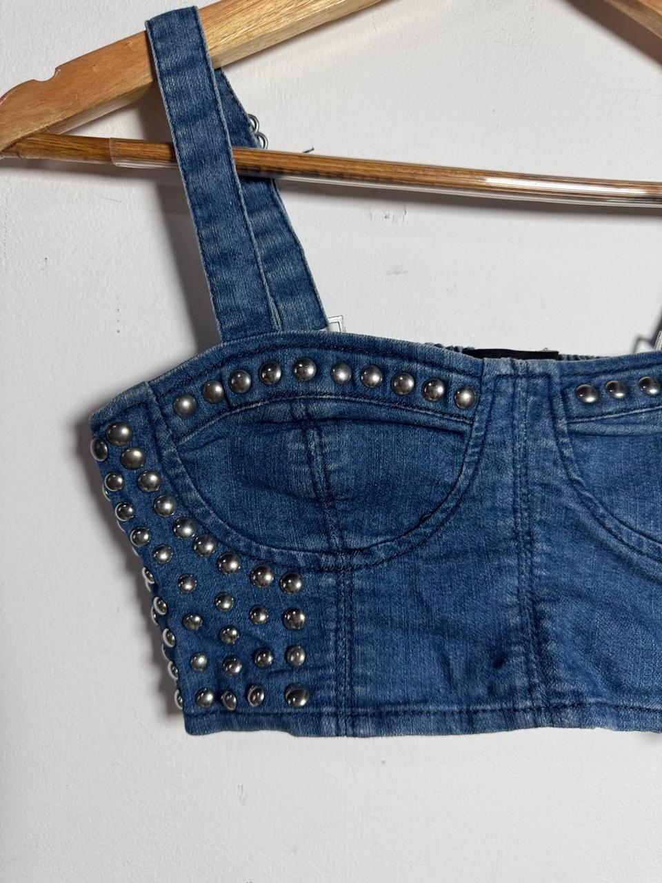 Top Cropped Jeans com Tachas – Forever21 – tam P