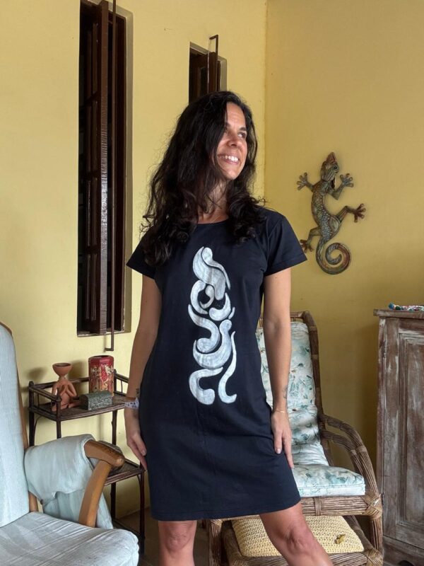 Seja o primeiro a avaliar “Vestido Artesanal Preto Abstrato – tam M”