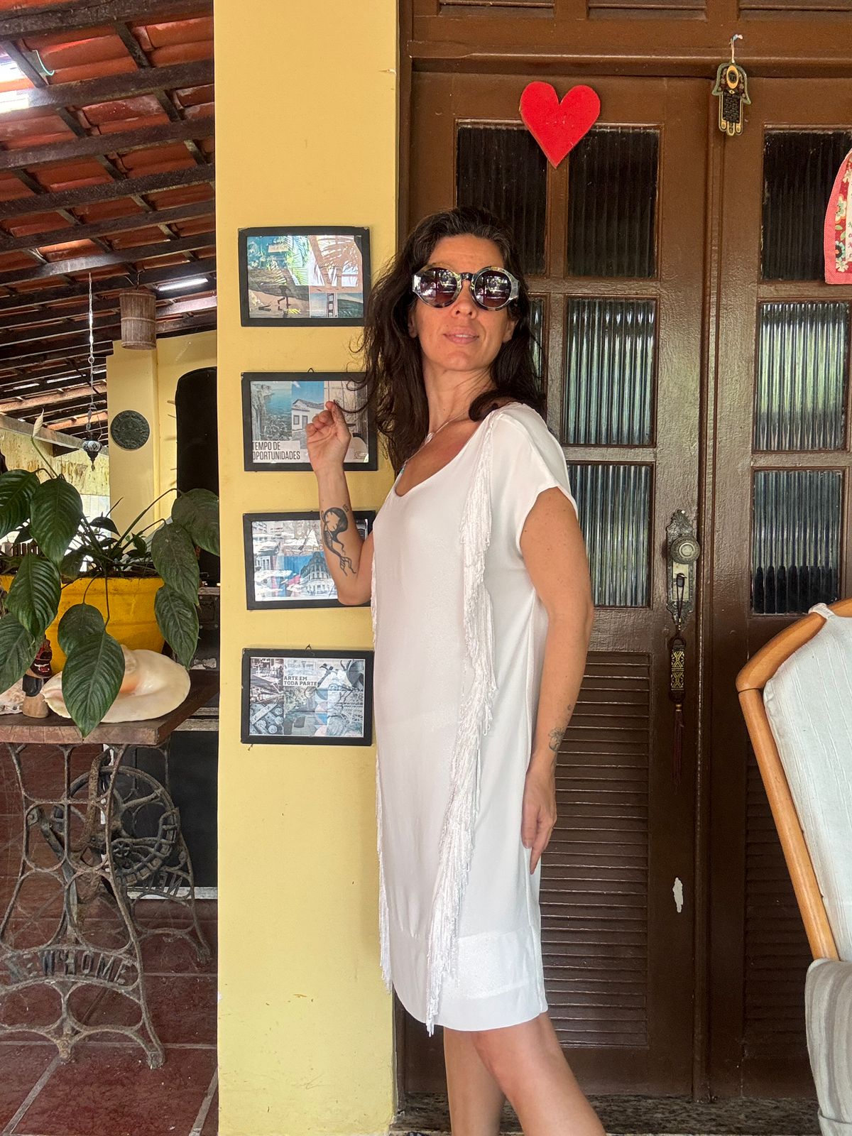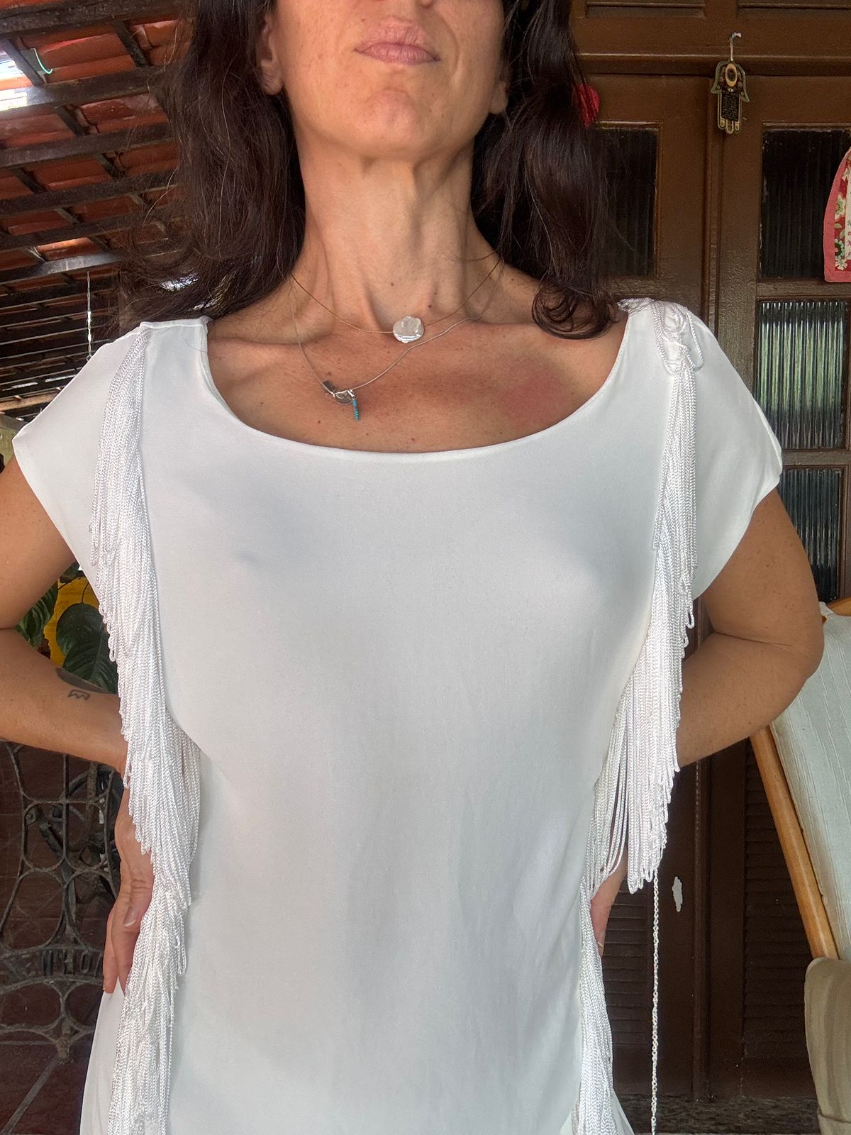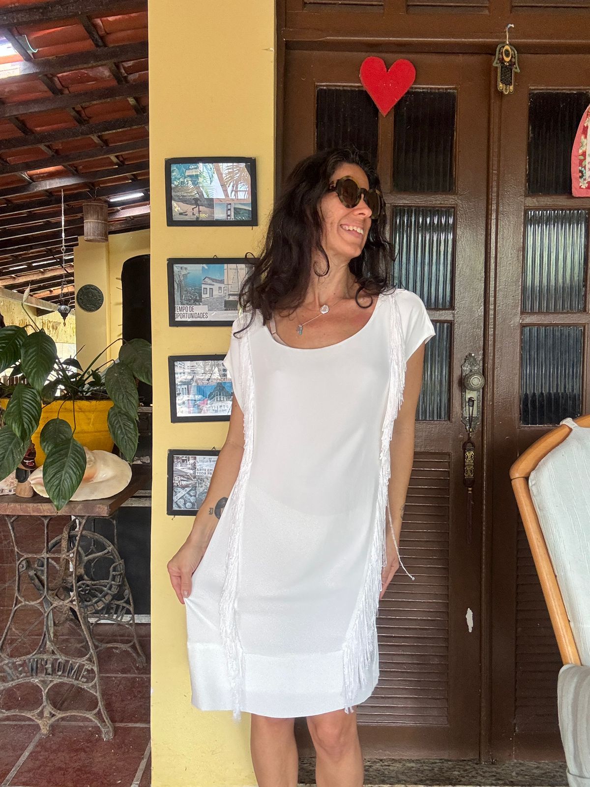 Vestido branco com franjas – Shoulder – tam P