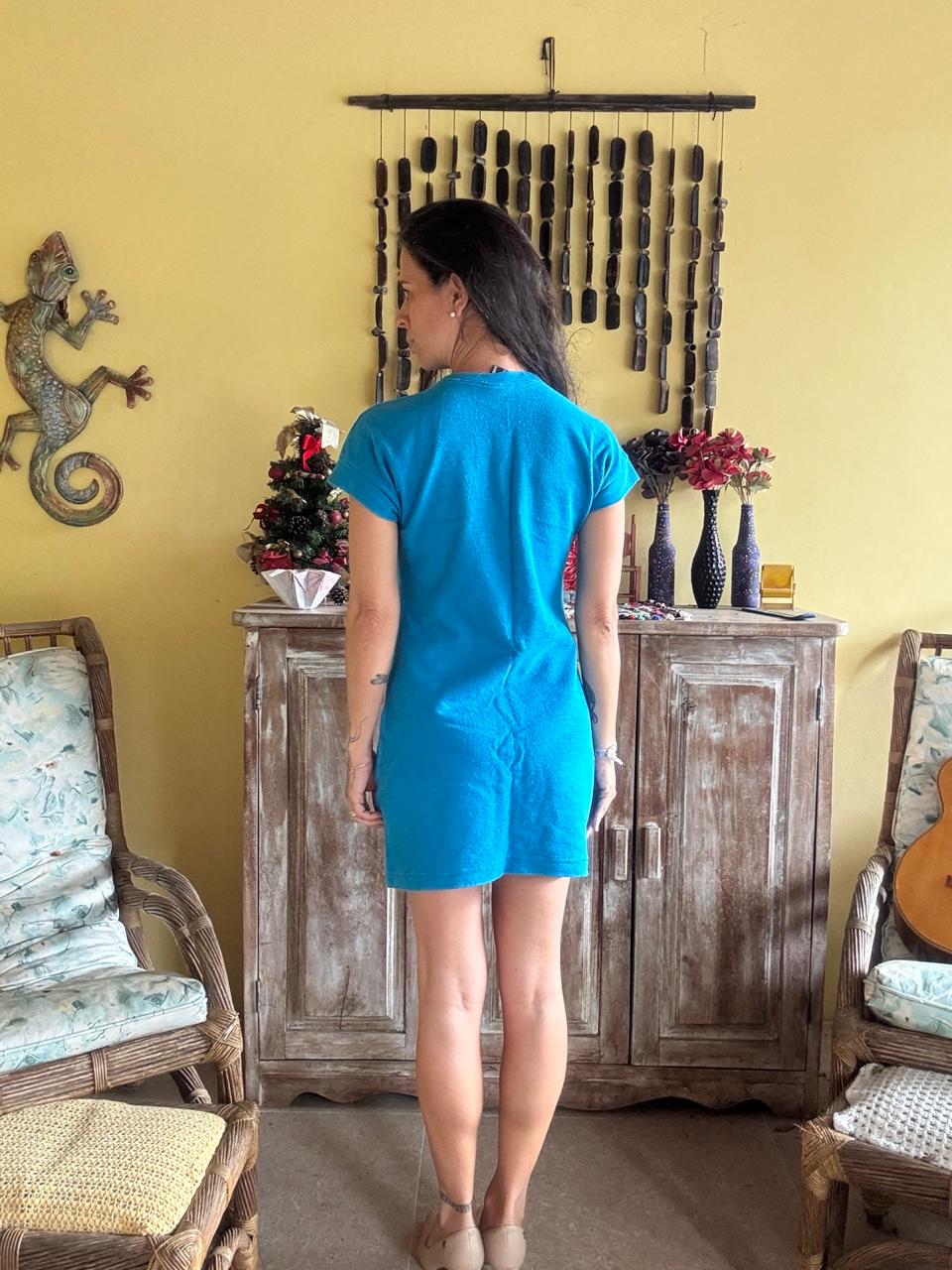 Vestido curto azul com bolso frontal – Hering – tam PP