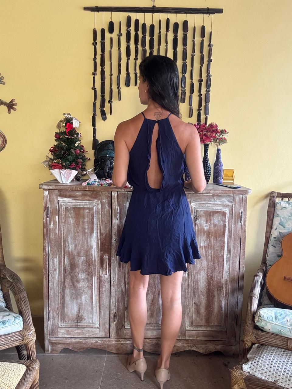 Vestido Curto Azul Marinho Acinturado – Boah – tam P