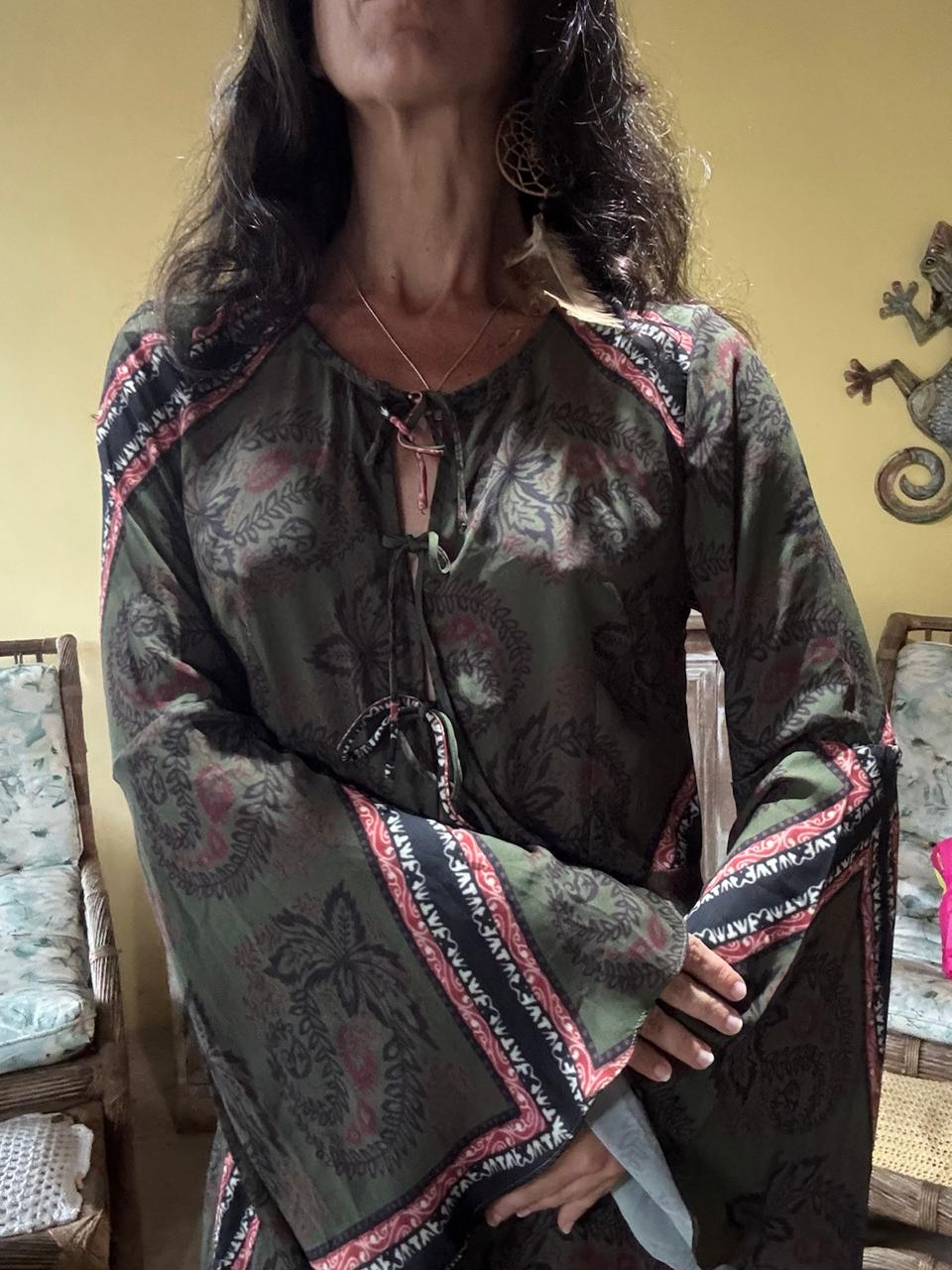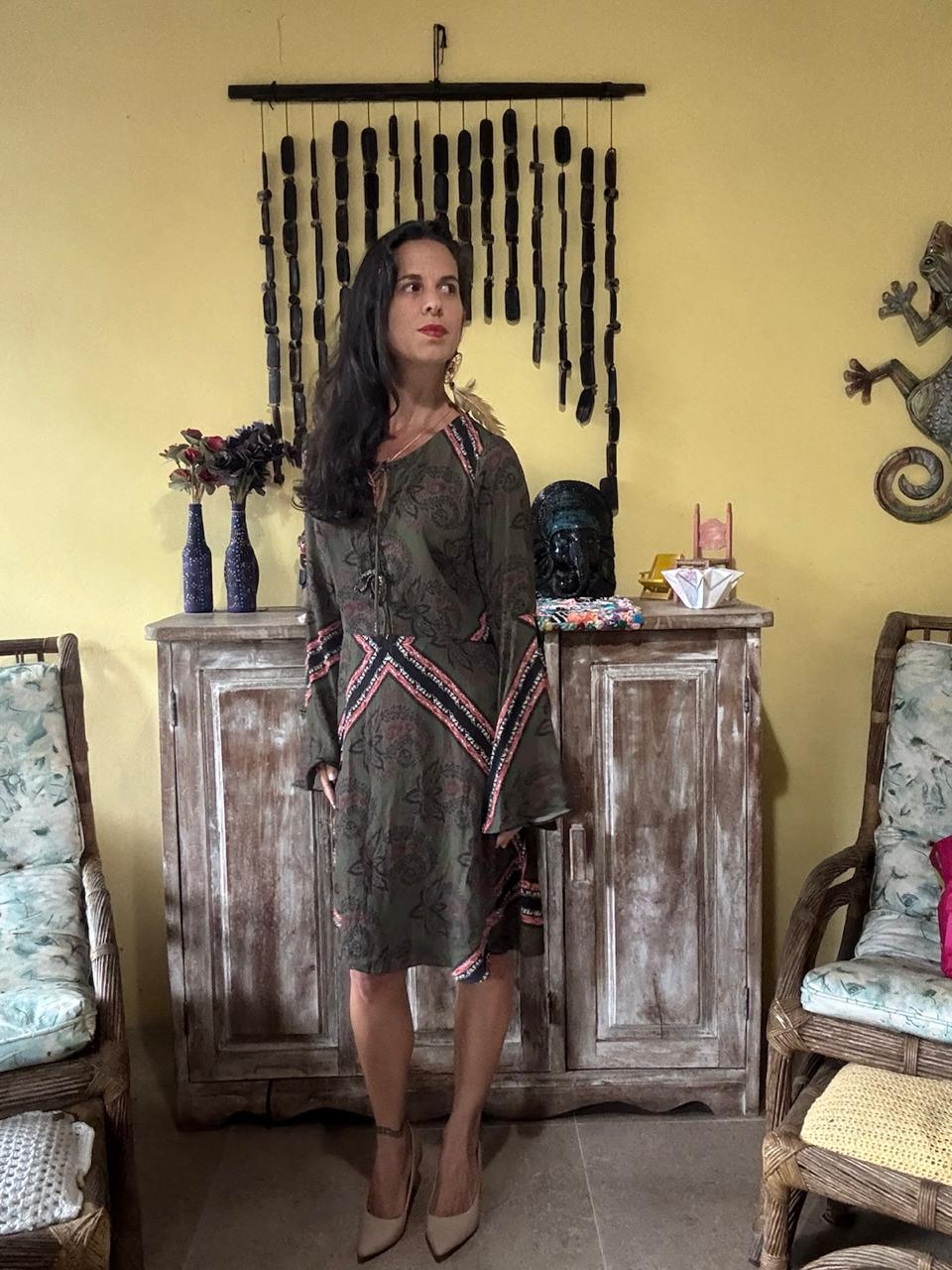Vestido Curto Boho Estampado Verde Manga Comprida – Vicio – tam P