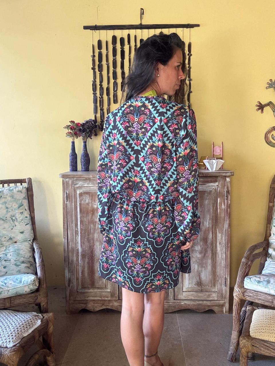 Vestido Curto Estampado Manga Longa – Riviera – tam M