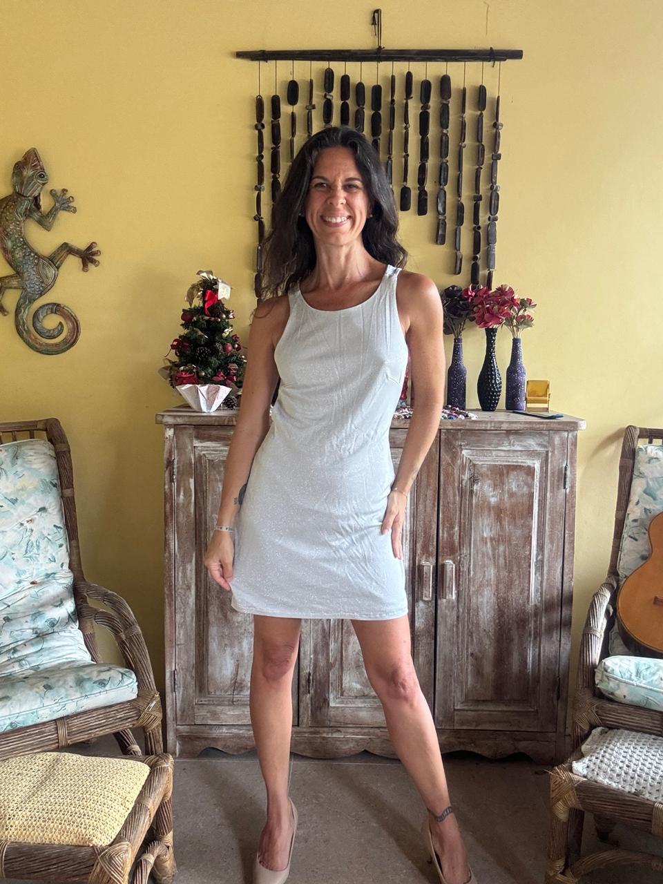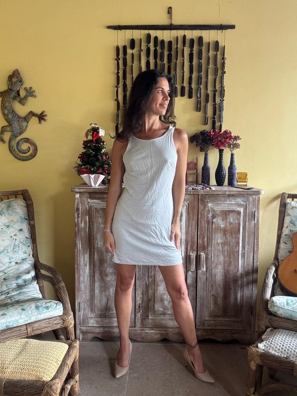 Vestido Curto Prateado Brilhante – Tessuti – tam P