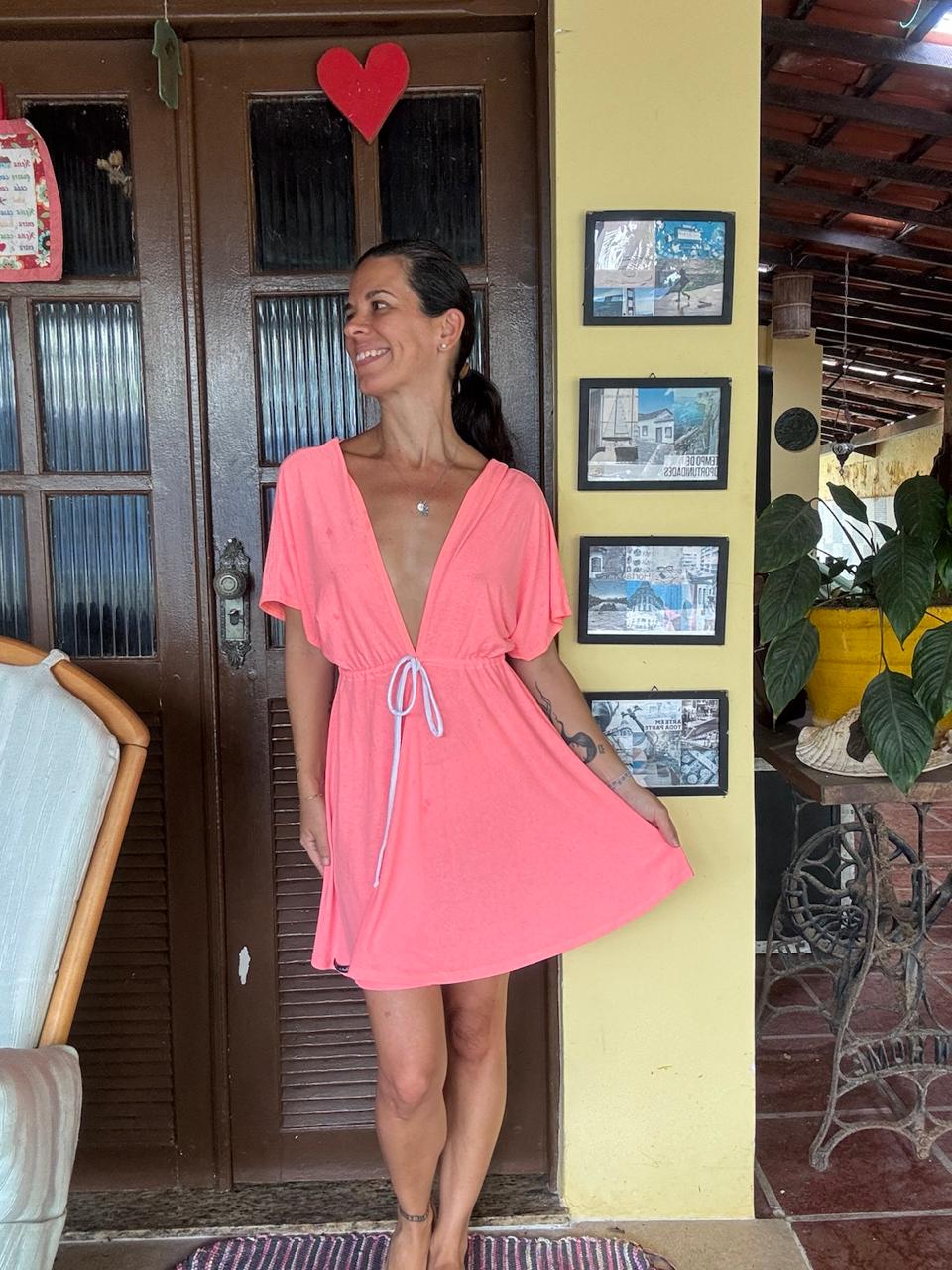 Seja o primeiro a avaliar “Vestido Curto Rosa Neon Decote Profundo – Maria Clara – tam P”