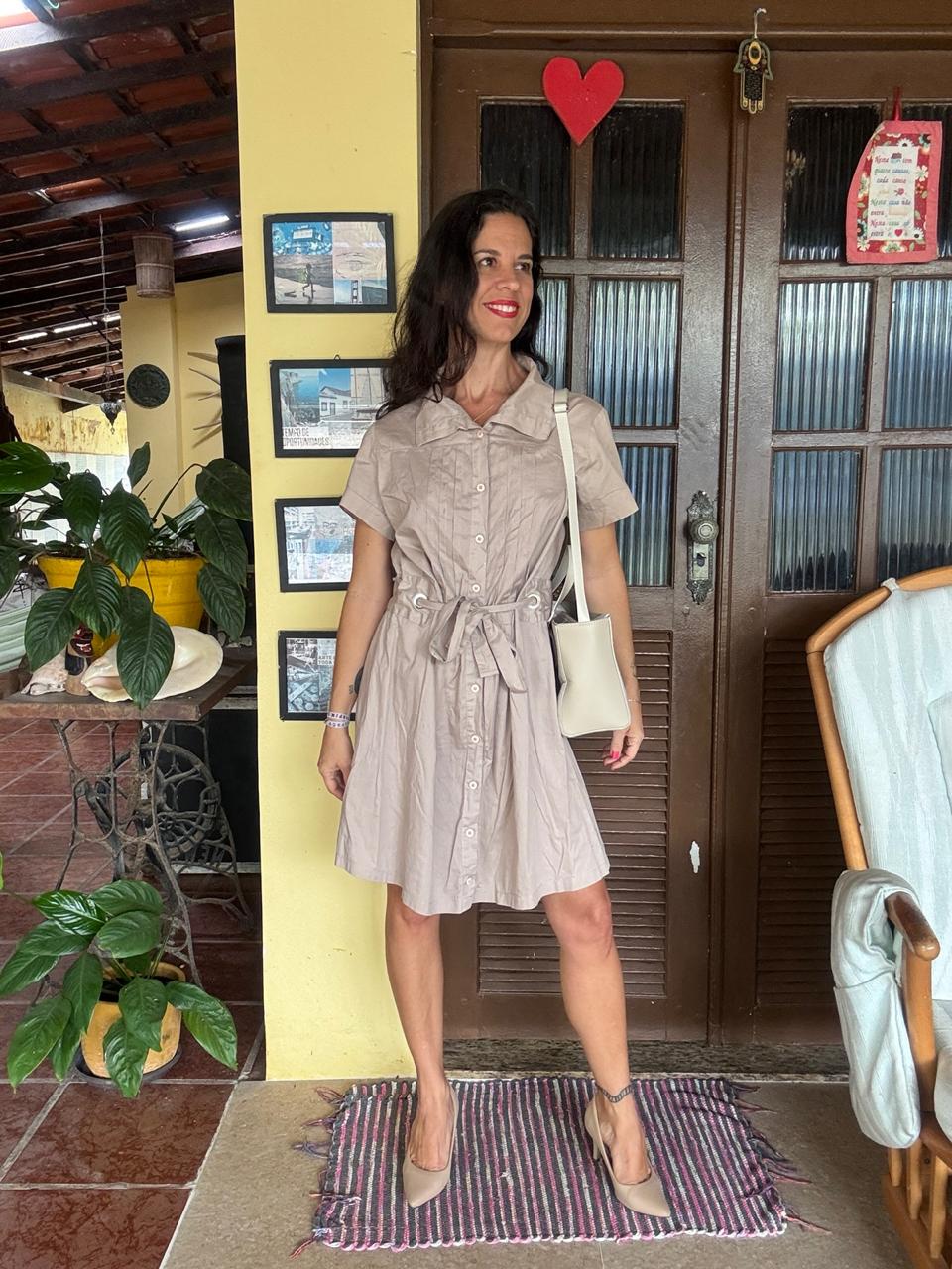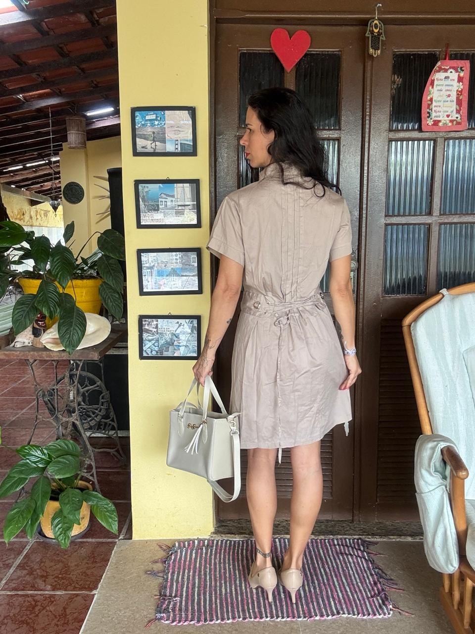 Vestido estilo chemise bege com botões – tam M