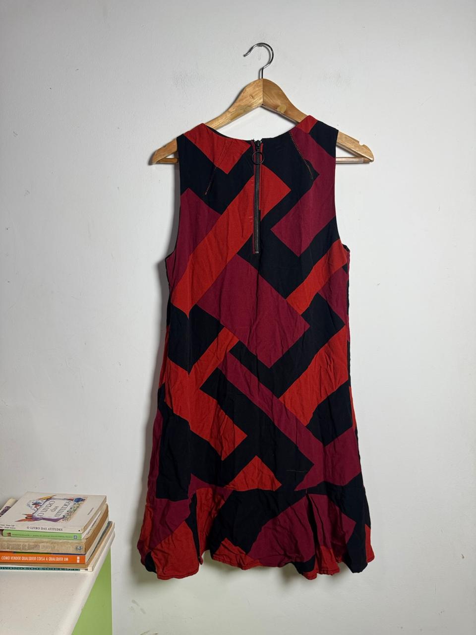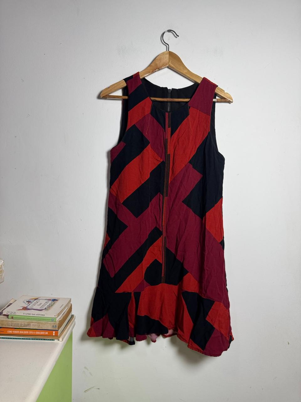 Vestido Geométrico Vermelho e Preto – tam M