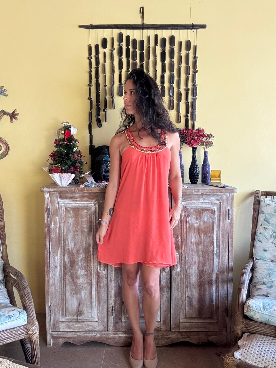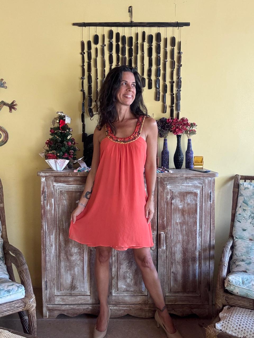 Vestido laranja com pedrarias – Elementais – tam G