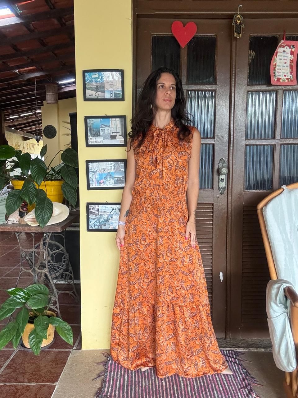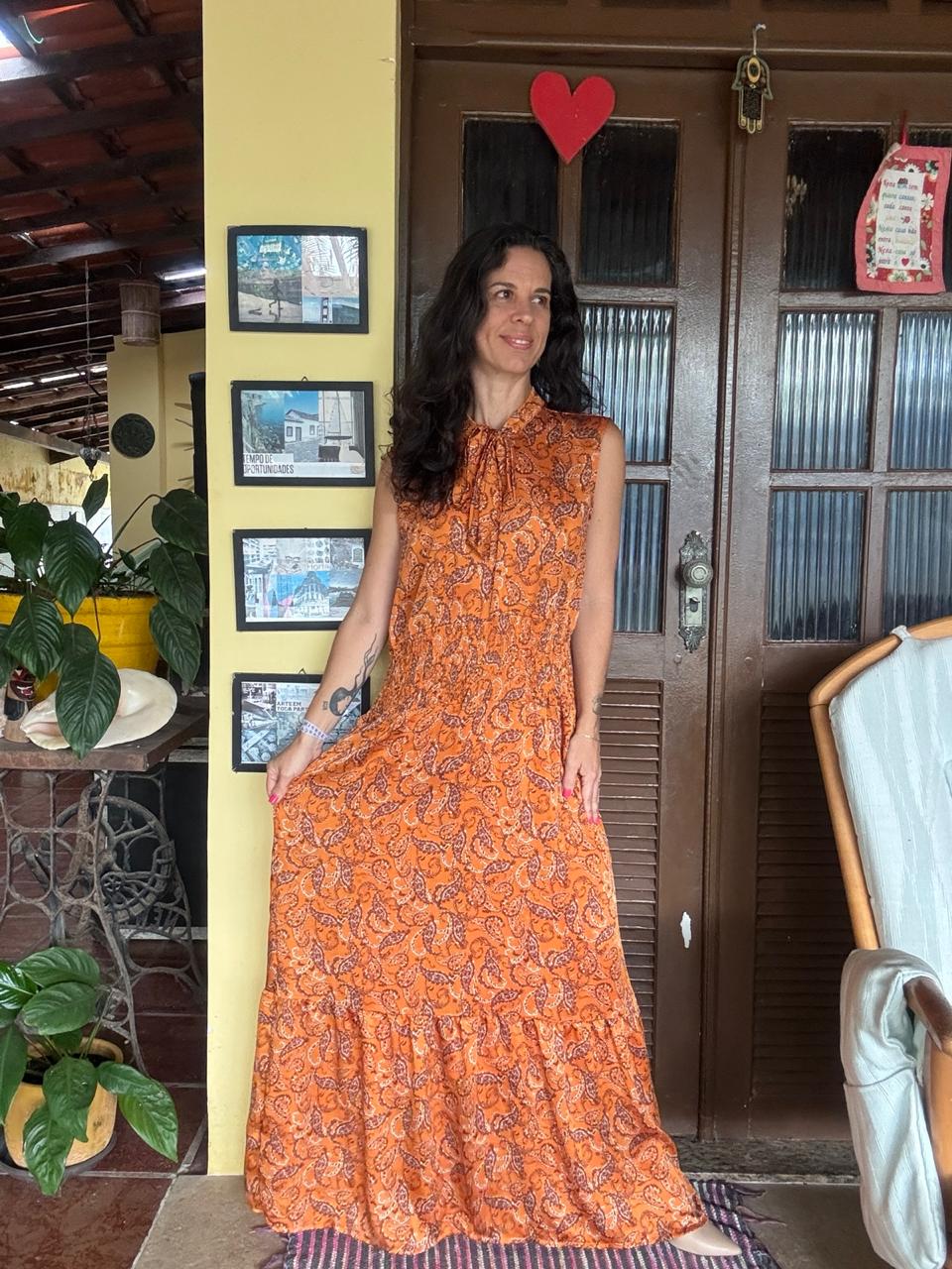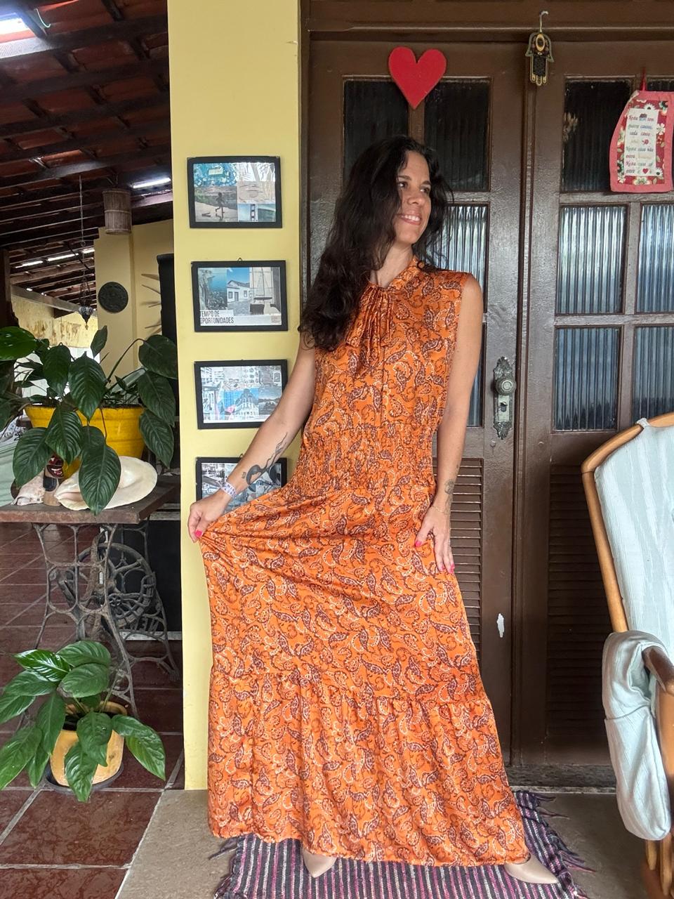 Seja o primeiro a avaliar “Vestido longo estampa laranja / terracota – tam G”