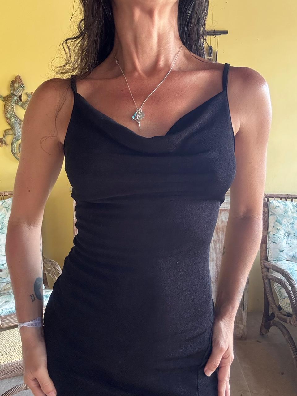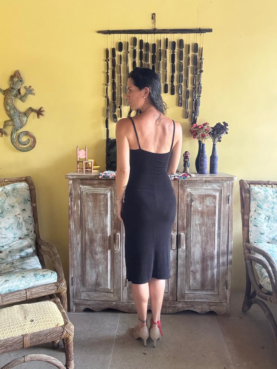Vestido Midi Preto com Fenda – tam 38 / 40